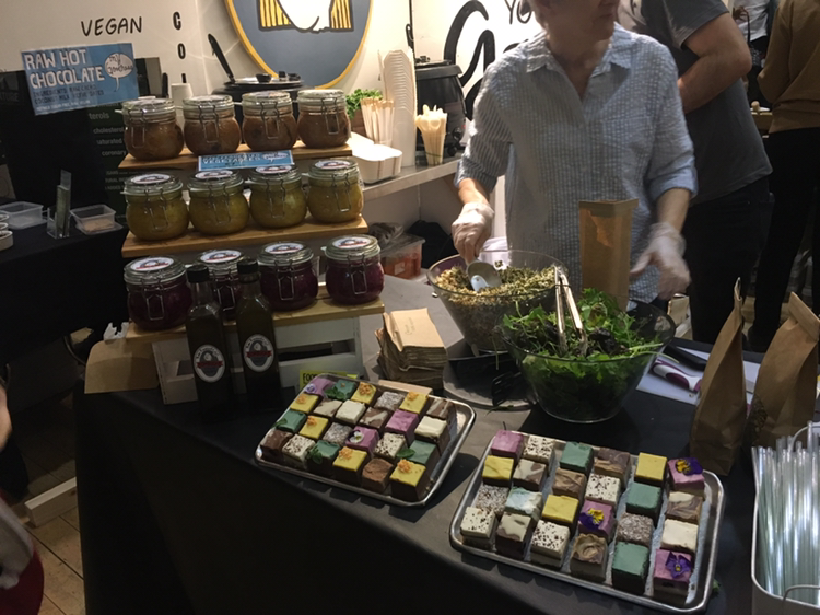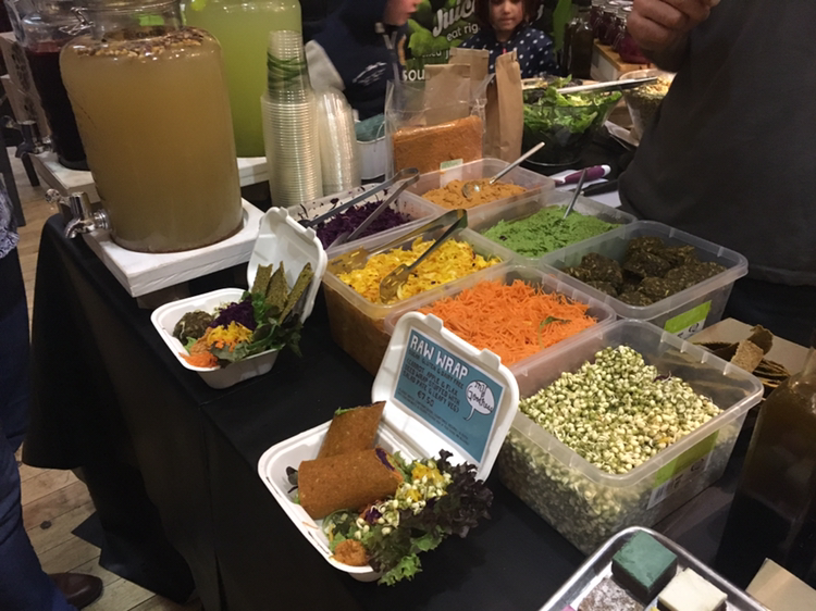 점심때는 일부러 제일 긴 줄에 합류했다.(줄이 길다는 건 뭔가 있는 집일 거라는 믿음!) 긴 기다림 끝에 두툼하고 따끈한 렌틸콩 버거를 손에 넣은 나는 이벤트홀 한켠, 이미 한 가족이 차지하고 있는 테이블에 남은 의자 하나를 빚져 엉덩이를 걸쳤다. 현미와 렌틸콩을 잘게 부수어 둥글게 구워낸 패티에 신선한 토마토와 양상치를 얹고 두유로 만든 살사마요를 살짝 뿌린 버거는 구수하면서도 느끼하지 않고 뒷맛이 산뜻했다. 후식으로는 진한 커피 한잔에 샘플로 얻은 생초콜릿 한조각. 채식의 장점 중 하나는 이렇게 든든하게 먹어도 속이 부대끼지 않는다는 거다. 곁얘기지만, 채식을 결심했다면 다이어트 따위가 아닌 균형 잡힌 영양섭취에 가장 신경써야 한다. ´비거니즘(Veganism)'은 '플랜트베이스트(Plant-based) 다이어트'를 기본으로 한다. 땅에서 자연에너지를 가득 품고 자라난 채소와 과일, 곡류의 영양분을 되도록 가공하지 않고 섭취하자는 것. 즉 맥도날드에서 햄버거 대신 감자튀김과 콜라만 먹는다고 채식이 아니란 소리다.