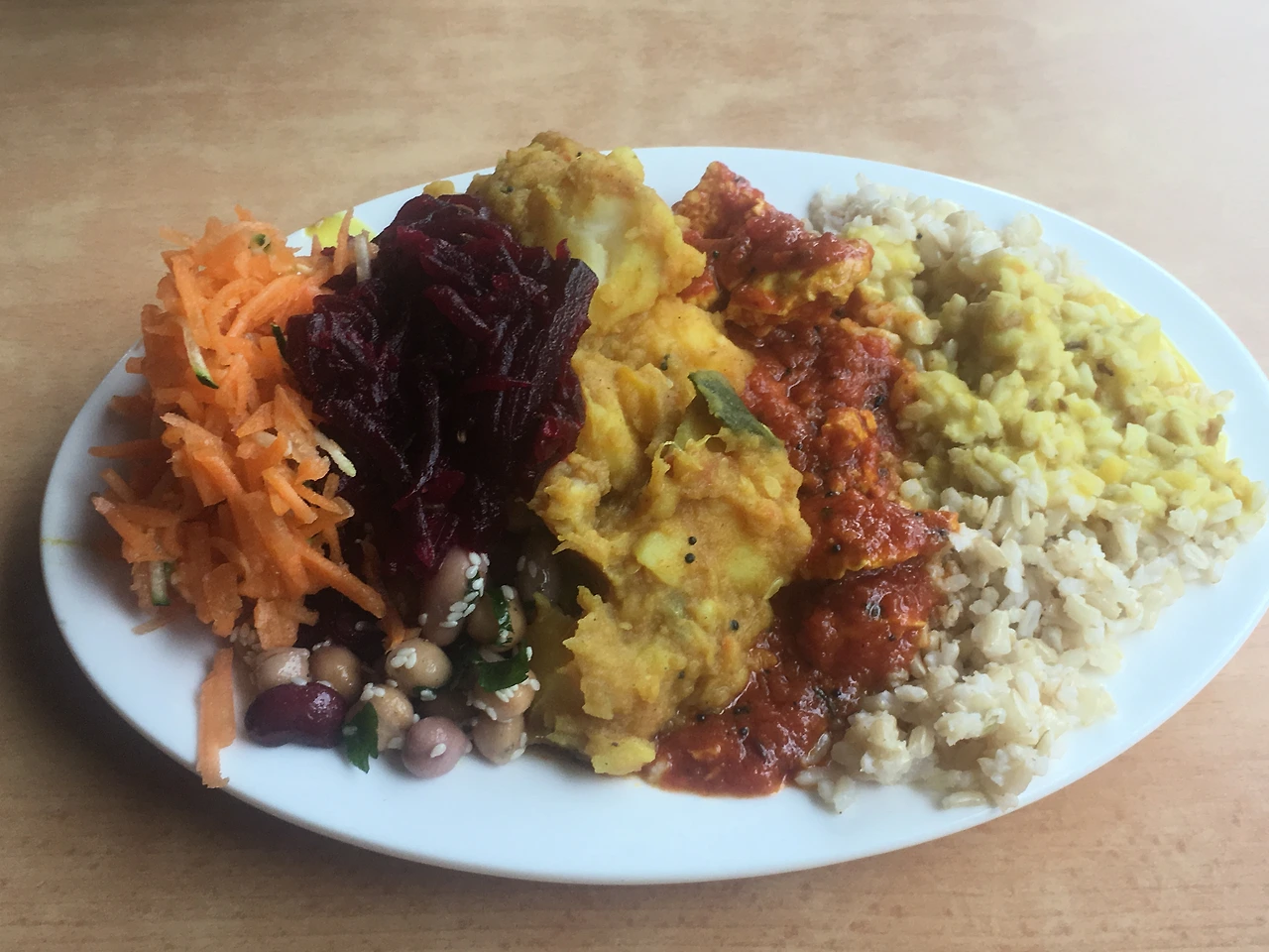여기는 더블린시티 중심에 있는 채식레스토랑 <고빈다스>. 이곳의 메뉴들은 전통적인 인도음식은 아니지만 강황, 큐민, 터머릭 등 인도커리에 사용되는 향신료를 주로 사용하기 때문에 인도음식과 가장 비슷하다. 기본 메뉴로는 스프, 흰밥과 현미밥, 콩요리, 야채요리, 두부, 수제치즈, 렌틸소스와 오늘의 메인요리가 있고, 디저트로는 홈메이드 비건케이크가 있다. 이 중 스프와 콩요리, 야채요리, 메인요리, 케이크는 매일 달라진다. 접시 크기에 따라 스몰은 6.5유로, 미디움 8.5유로, 라지 10.5 유로. 하지만 접시 크기와 상관없이 스프와 케이크를 제외한 모든 메뉴를 골고루 맛볼 수 있다. 먼저 원하는 사이즈를 고르고 원하는 음식을 말하면 직원이 접시에 담아주는데, 푹푹 퍼주는 인심이 우리네 옛날 시골인심이라 웬만한 남자성인도 스몰사이즈로 배부르게 먹을 수 있다. 실제로 접시가 이미 다 찼는데 고객이 원하는 음식이 더 있으면 작은 접시에 따로 담아 내주기도 한다. 물론 추가요금은 받지 않는다. 같은 이름의 식당이 앤지어 스트리트에 또 하나 있다. 같은 단체에서 운영하는 식당이라 가격과 음식 종류, 맛, 모두 비슷한데, 앤지어 스트리트 지점은 음식이 내 입에 좀 짜서 개인적으로는 에비 스트리트에 있는 지점을 선호한다.