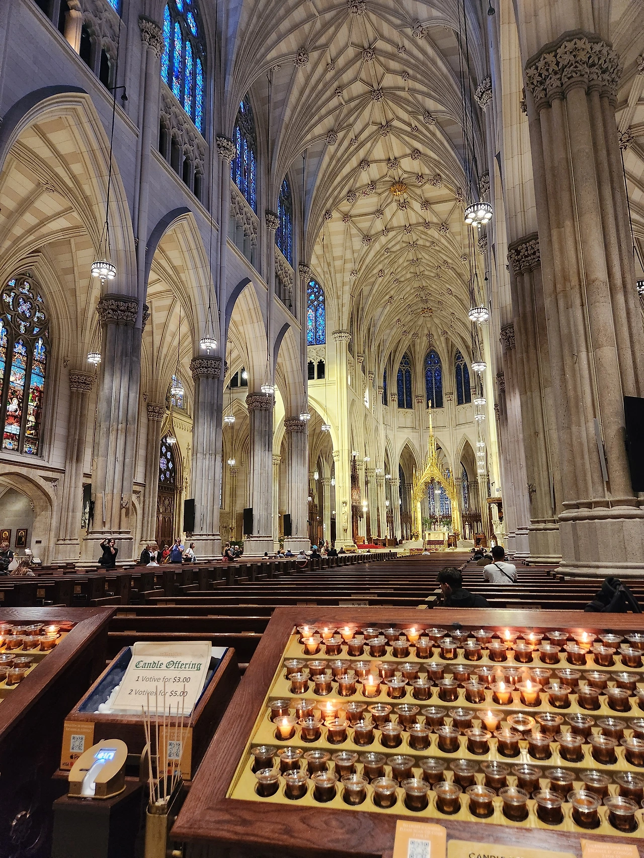 원하는 사람들은 초에 불을 붙여 기도를 드릴 수도 있다. 1878년에 완공된 구조물로 고딕양식으로 이루어진 게 특징이다. 운이 좋게도 미사가 시작되는 시간이었고 거대한 파이프 오르간의 소리도 들을 수 있었다.