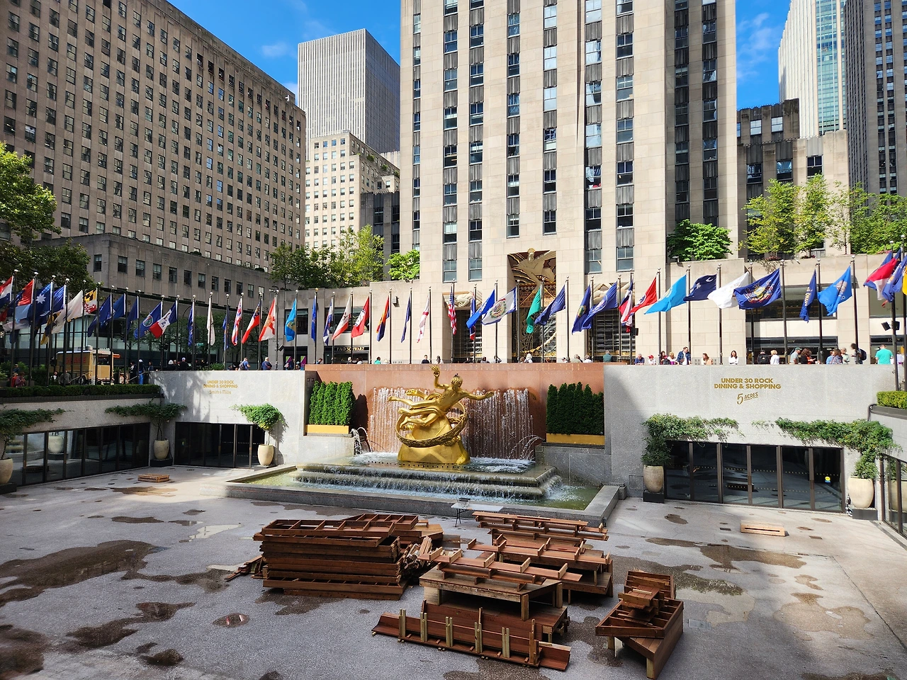 Rockefeller Center 앞에 사람들이 많이 모여 사진을 찍고 있다. 겨울이 되면 이곳은 스케이트장으로 바뀐다고 한다. 신나는 음악이 흘러나온다. 즐거움과 설렘을 안고 온 여행객들의 표정은 기쁨으로 가득 차 있는 듯하다.