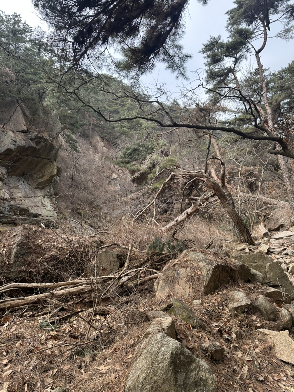 새해에 자주 찾던 북한산 문수봉으로 향했다. 등산로에 툭 튀어나온 부러진 나무뿌리 위치까지 기억할 만큼 익숙한 길이었다. 그런데 그 산의 풍경이 일변해 있었다. 곳곳에 소나무의 가지가 부러지고 아예 몸통이 쪼개져 있기도 했다. 바닥에는 아직 푸른 솔잎이 융단처럼 깔려있었다.