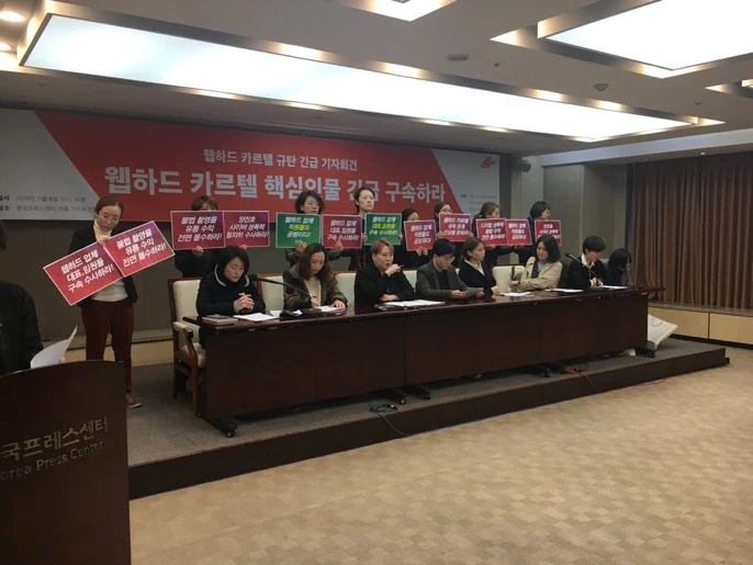 그러던 중, 지난 11월 6일 한국사이버성폭력대응센터와 한국여성의전화, 한국여성단체연합, 녹색당 등이 [웹하드 카르텔 규탄 긴급 기자회견]을 진행했다.