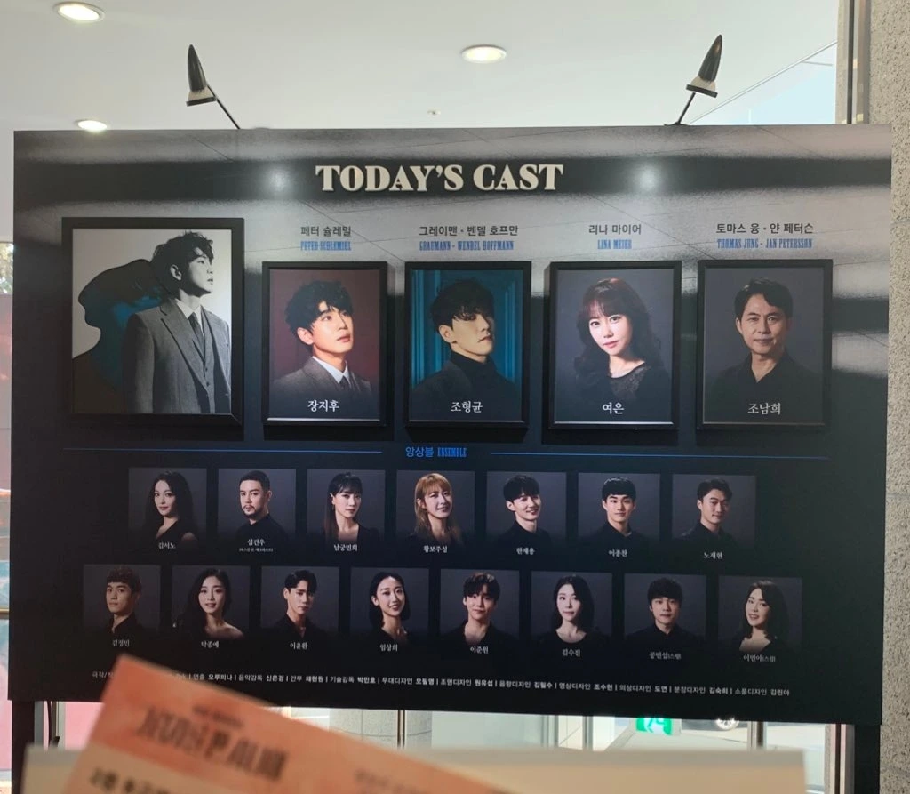요즘 뮤지컬에서 LED 스크린을 많이 쓰지만 몇몇 극을 제외하면 (젠틀맨즈 가이드나 메피스토 정도?) 오히려 '돈 아끼냐?'싶고 그다지 좋아하지 않았는데 [그림자를 판 사나이]에서는 영상 자체도 잘 만들었고 활용하는 방법이 극의 판타지적인 매력을 잘 부각해서 처음 볼 때 무대예술만으로도 표값을 한다고 생각했다.
