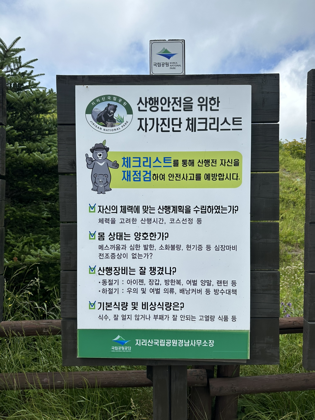 만약 지리산 종주를 떠날 계획을 품고 이 글을 읽고 있다면 꼭 좌측의 [산행안전을 위한 자가진단 체크리스트]를 확인하자.