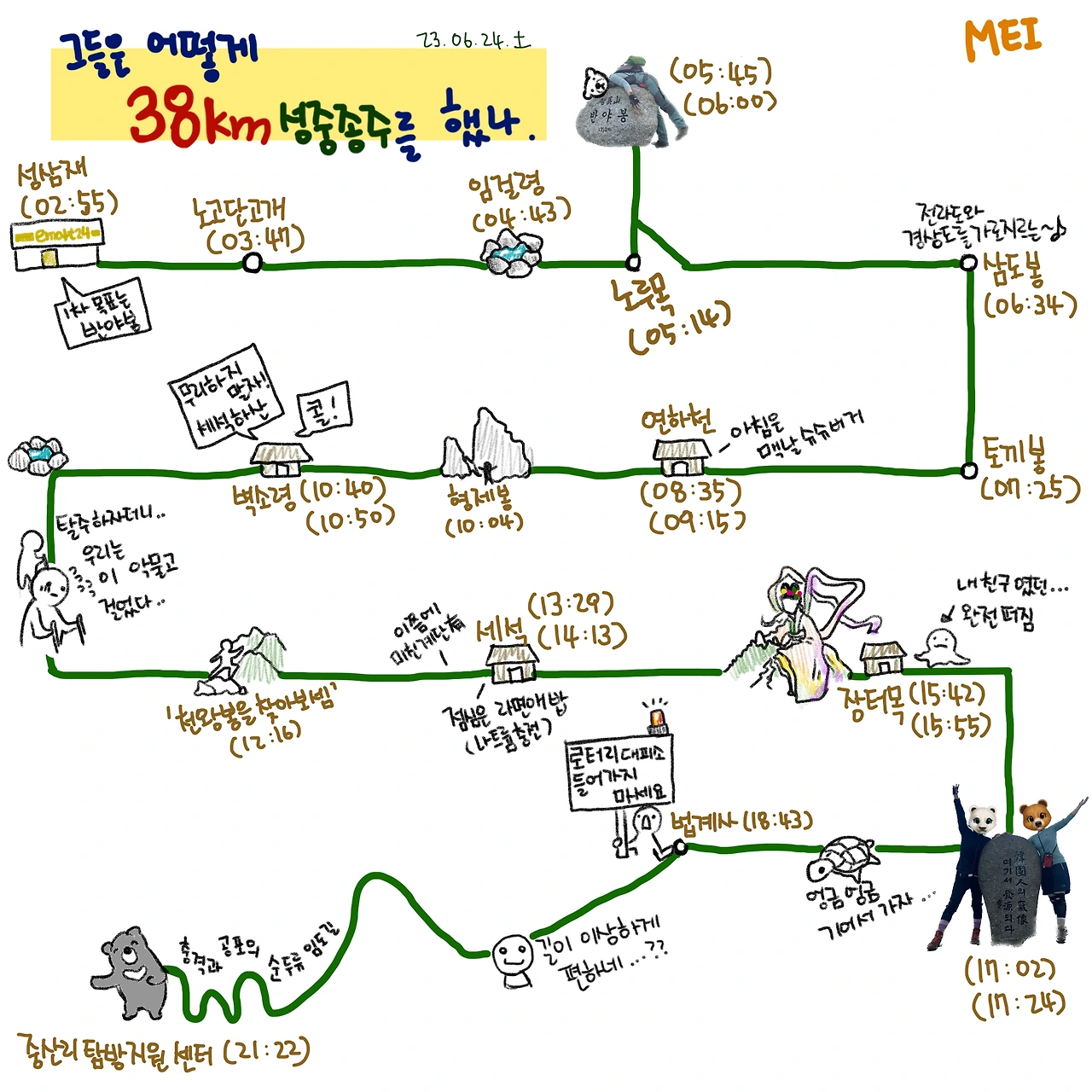 어이없는 실수에 화가 나서 하산길 내내 툴툴대다가 서울 가는 버스를 기다리며 콜라를 마실 때에서야 겨우 성중종주를 완주한 기쁨이 뭉클하게 다가왔다.
