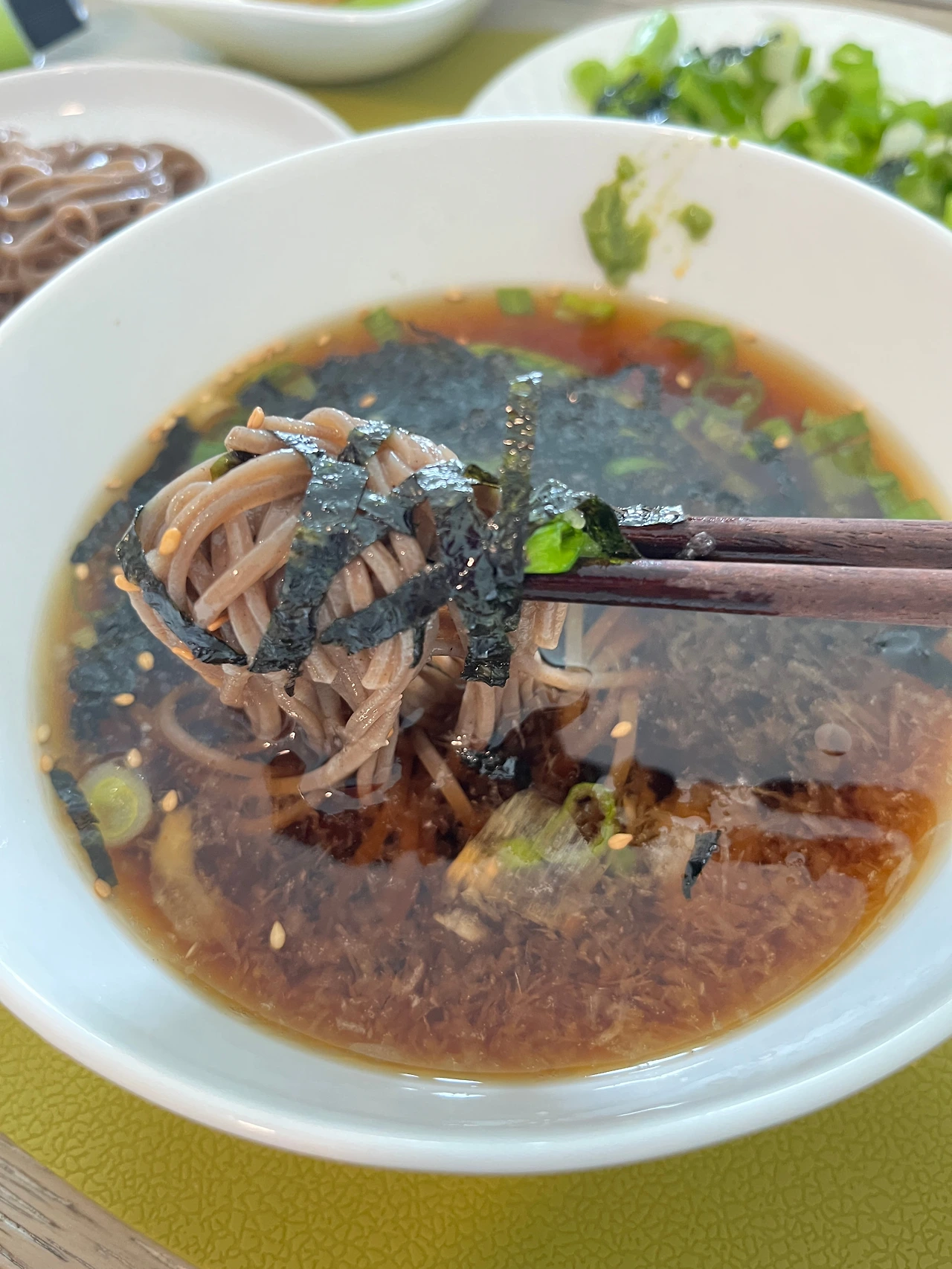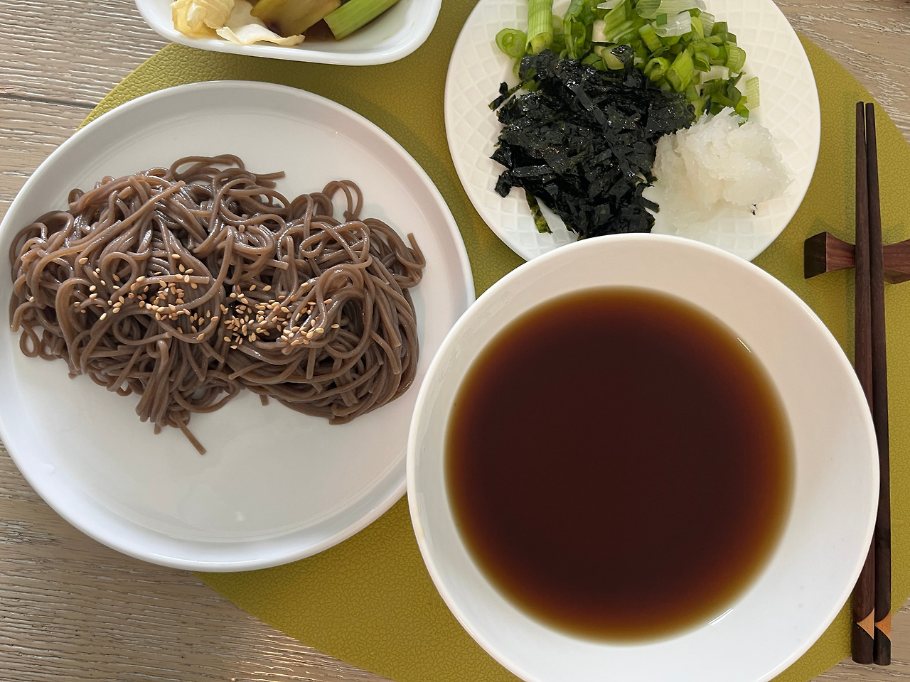 시원한 무 갈아 얹은 라이트 한 메밀 소바가 떠올랐다.