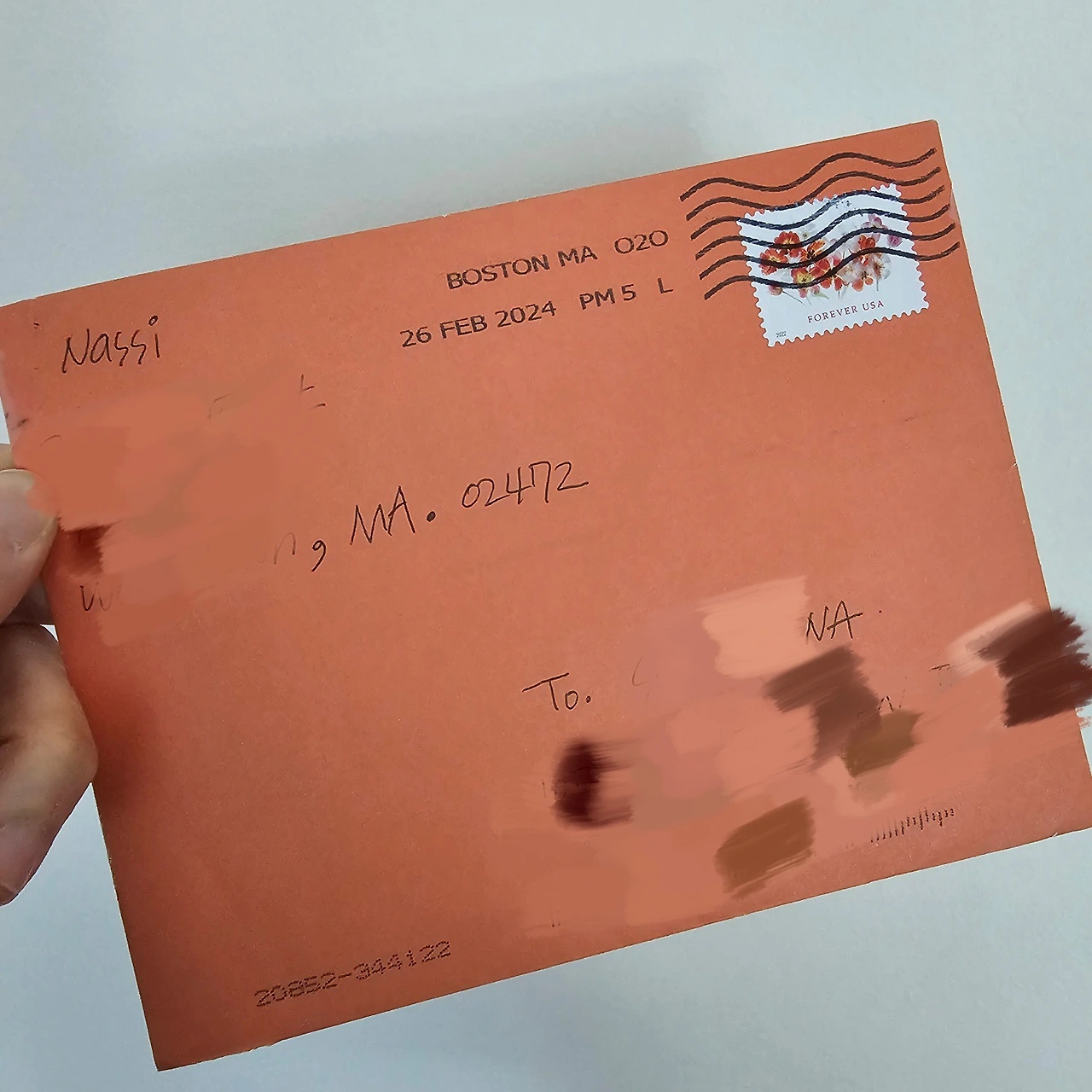 (좌) 보내기 전 찍은 편지 (우) 메릴랜드에 무사 도착한 편지