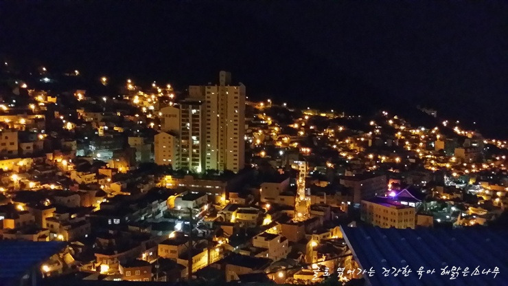산을 깎고 바다를 메워 만들어 마치 사다리를 올라타듯 집들이 늘어져 있는 탓에 야경이 아름다운 부산.