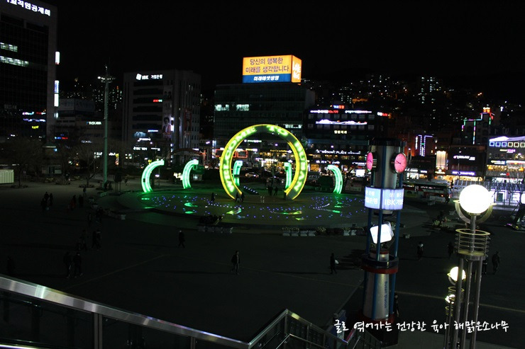 광명역에서 KTX를 타고 두 시간 남짓 지나면 분수가 멋진 부산역에 도착합니다.
