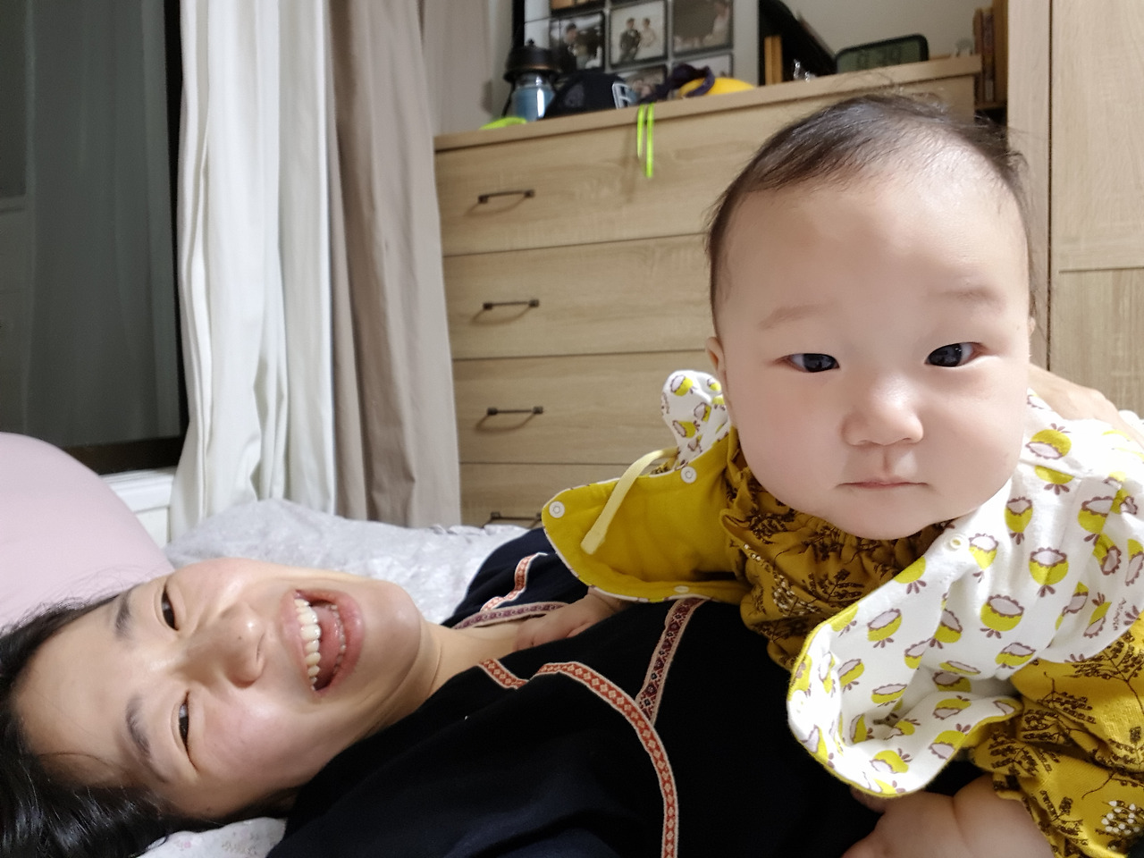 아! 나에게 딸이 있구나!라고 이제야 실감하며 보내게 된 만 6개월 이후, 7개월 차 초보 엄마 그리고 나의 동지 딸.