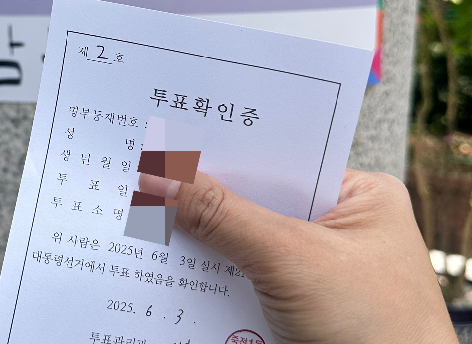그래서 처음으로 투표확인증도 받아봄 - 이것도 수기!