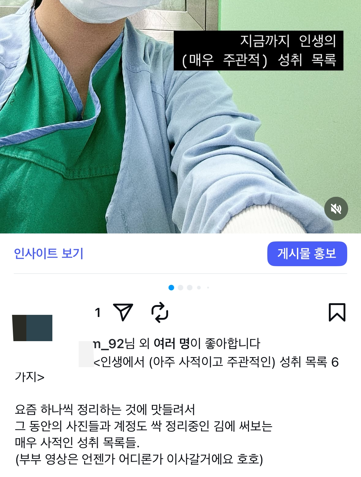 요 인스타 계정은 그런 소소한 셀프 성취 아카이빙 용, 그냥 무조건 나 칭찬해 공간으로.