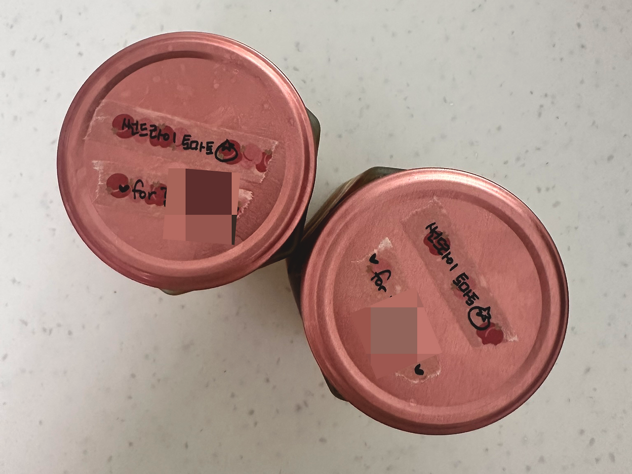 최근에 썬드라이 토마토를 만들어서 병에 담아놨는데, 뭔가 집들이 선물로 좋아보이는 거지.