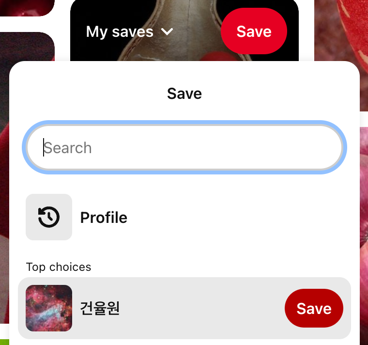 이 카테고리는 자신만의 비밀 폴더로 사용할 수도 있으며, Pinterest 이용자들에게 공개, 공유도 할 수 있다.