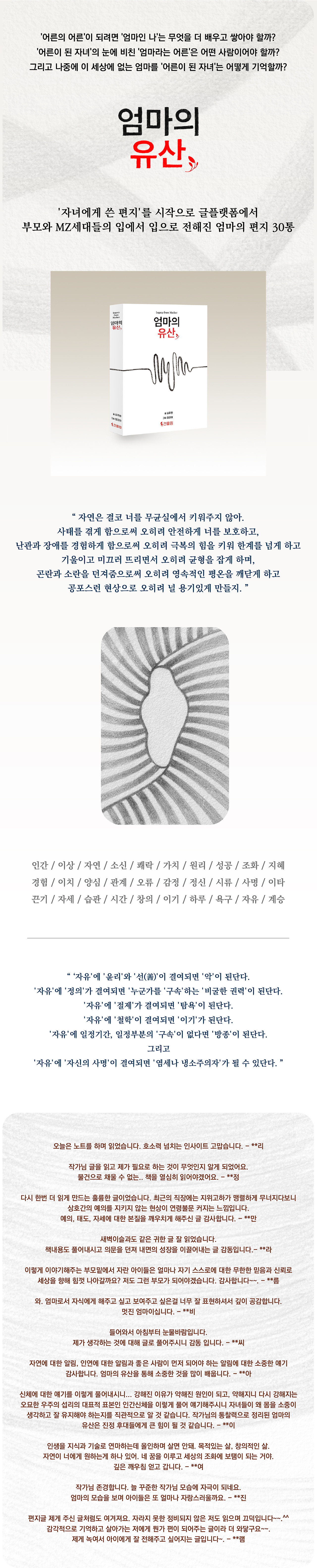 한 장의 이미지를 선택하고, 한 문장의 표현을 다듬는 과정은 책을 만들 때와 다를 바 없이 많은 고민과 노력을 요구했다. 독자들에게 어떻게 다가갈지, 어떤 메시지를 전달할지를 끊임없이 생각하며 작업을 이어가는 이 과정은 내 창작 여정을 되돌아보는 일이기도 했다.