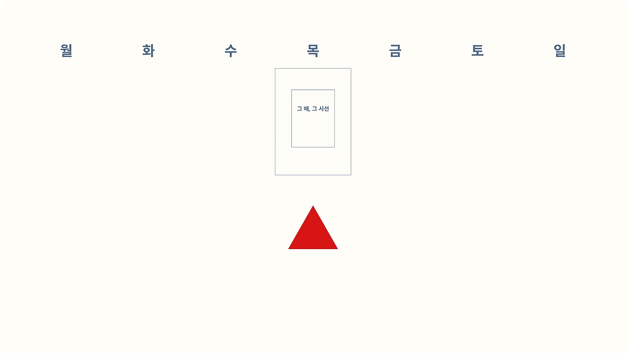 나의 과거, 현재, 미래의 이야기가 모두 함께 담기는 ⟨그 때, 그 시선⟩이 일주일의 한가운데인 목요일에 위치한다. 이는 사유를 통해 과거와 미래를 잇고, 성장으로 이어지는 '나의 사유의 다리(참고)'에 관한 이야기다.