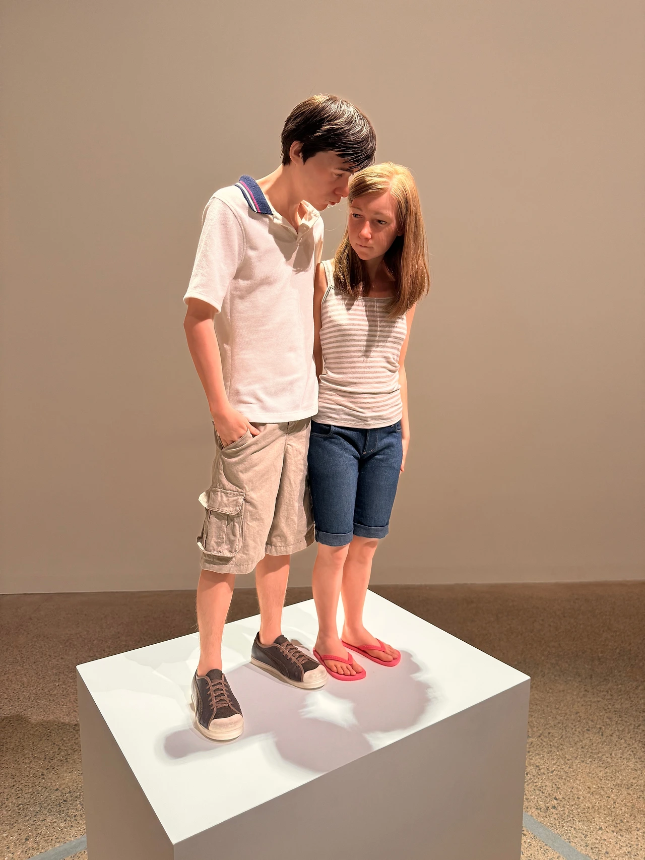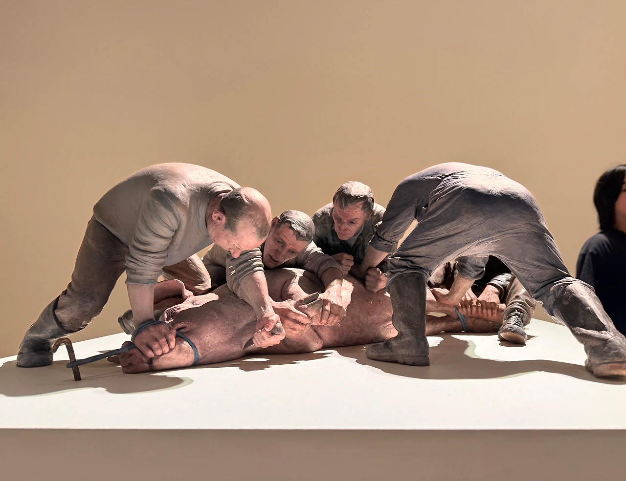 작은 체구의 인물부터 거대한 인간과 동물 조각까지, 인간의 사소한 일상이 극사실적으로 재현되어 있었다. 처음에는 그저 정교한 표현에 시선이 머물렀다. 피부의 결, 주름의 방향, 손끝의 긴장까지. 그러나 작품 사이를 천천히 걸으며 문득 느끼게 되었다. 이 전시는 한 장면의 재현이 아니라, 하나의 생애를 펼쳐 놓은 공간이라는 것을.