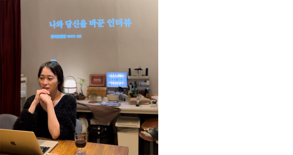 인터뷰가 홍보해 주는 거 이런 식으로 많이 생각되기도 하죠. 인터뷰라는 것이 결국 그 사람 좋은 면만 부각해 주는 거 아니냐 하는데, 저는 목소리가 없는 사람들한테 목소리를 주는 것이 인터뷰고, 그 사람의 이야기를 통해서 사건화를 할 수도 있는 것이 인터뷰라고 생각해요. 저는 <우명함>도 그랬지만 이야기를 담아서 하는 인터뷰를 좋아하고, 인터뷰를 해보면 스스로에게도 도움이 된다는 믿음을 갖고 있어요.