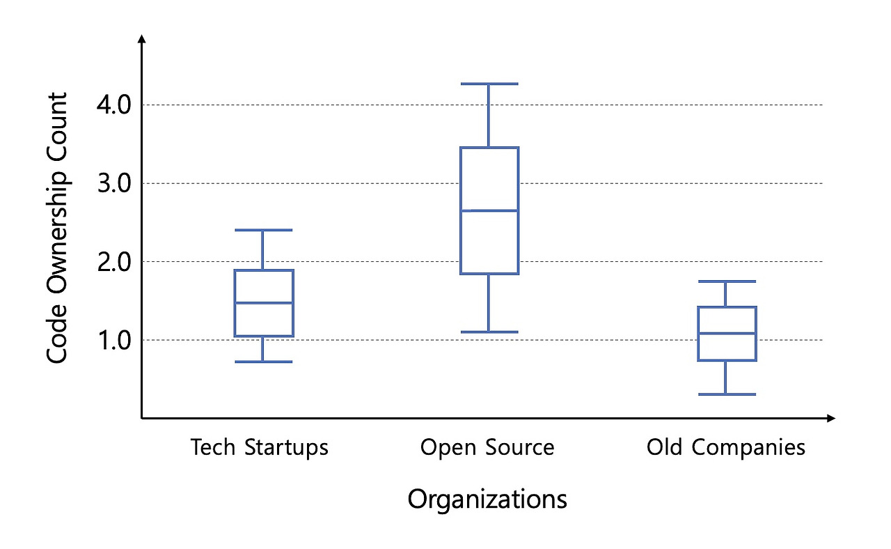 회사에 존재하는 모든 코드들에 그 코드를 유지 보수 할 수 있는 인원이 몇 명인가를 조사해서 기록한 다음 평균을 낸다고 생각해보자. 이 가상의 지표를 코드 오너십 카운트(code ownership count)라고 해보자. 이 코드 오너십 카운트는 회사의 코드 유지 보수 상황이 얼마나 안정적인가를 나타내는 지표가 될 수 있다.