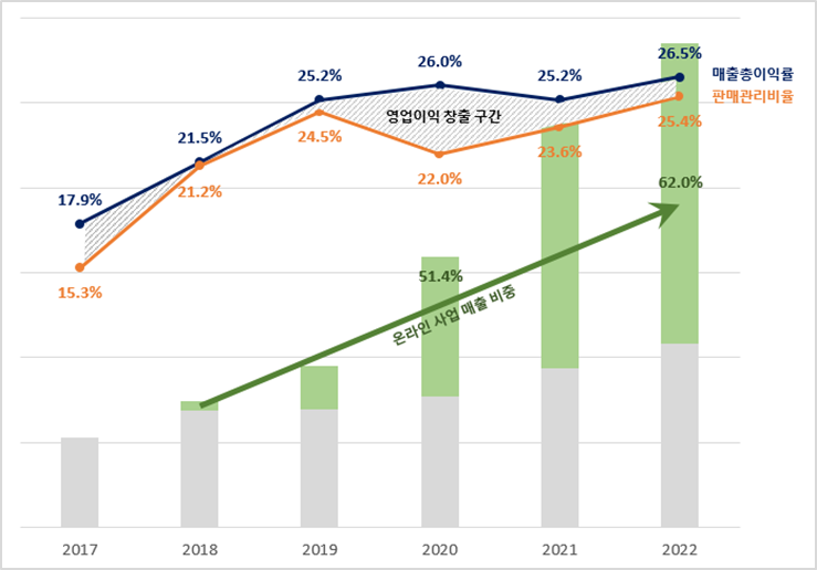 4️⃣ 시장성 위기(오늘회) : 식품은 여러 카테고리 중 온라인 침투율이 가장 낮은 카테고리입니다. 흔히 침투율이 낮을수록 ‘성장 여력이 크다’고 판단하곤 하는데요. 그만큼 혁신을 위한 비용이 많이 들어가더라도, 장기적으로 시장성을 입증하는 것이 중요합니다.