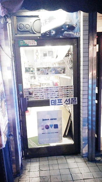 가게는 정말 작았고 CD뿐만 아니라 카세트테이프도 조금 있었습니다. 가게 정문에는 '테프 선물'이라는 글씨가 붙어 있었는데, 붙여 놓은 지 이십 년은 더 된 거 같아요. CD 장에는 관리를 잘 안 하시는지 CD 비닐에 먼지가 조금씩 쌓여 있고, 색이 바랜 음반도 많았습니다. 그리고 음반 장식장 아래쪽에는 솔방울 같은 것들이 놓여 있었어요.