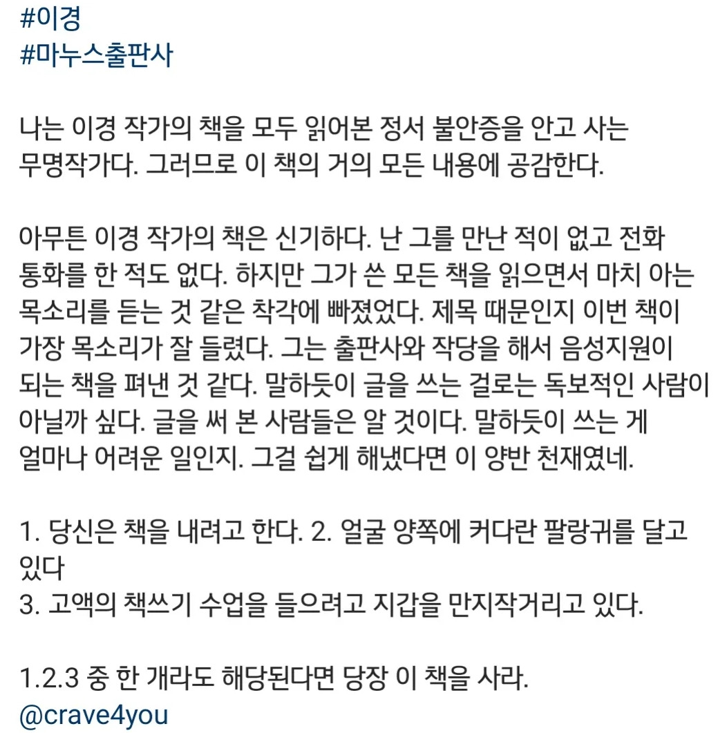 여러분, 리그램 할 줄 모르는 바보 몽충이 이경, 책 홍보를 위해 허락도 받지 않고 캡처를 불사한다. 네?