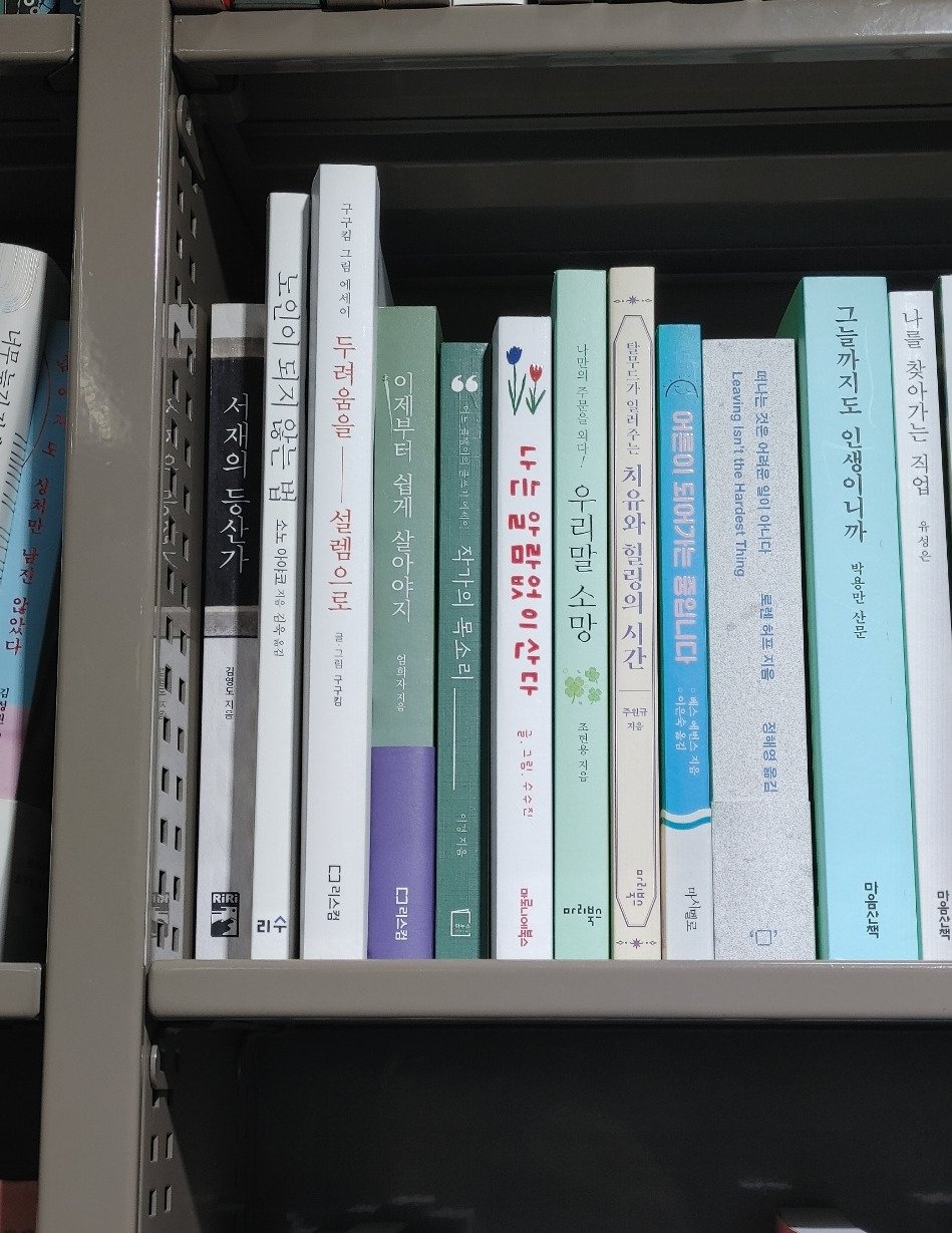 그렇담 내 책은 노원문고 어디에 자리 잡았는가 하니 눈치도 없이 국내 수필 서가에 들어가 외로이 자리를 잡은 것이다. 으으으, 배신감이 몰려온다, 내가 노원문고에 쌓아둔 적립금이 얼마인데...(사실 얼마 앙댐. ^^)