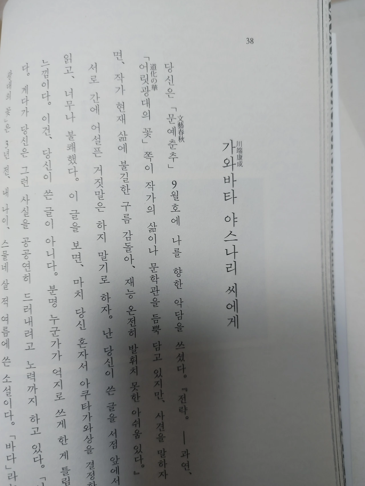 한집>에 실렸는데, 1936년 6월의 일이었고, 가와바타에게 항변(?)하는 내용의 글은 소와다리 출판사에서 나온 <이십 엔, 놓고 꺼져>에 실렸는데 1935년 8월로 소개된다.
