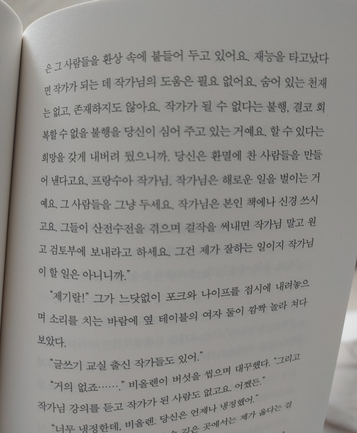 그들은 실질적인 글쓰기를 가르치는 것이 아니라, 야부리를 힘껏 털어 글을 쓸 수 있는 동기를 부여해 주는 것처럼 보인달까. 물론 평생 글을 쓰지 않고 살던 사람에게 글을 쓸 수 있는 동기를 부여해 주는 것은 굉장한 힘이겠지만, 글을 쓰고자 하는 사람들은 그걸 굳이 글쓰기 강사들을 찾아서 동기부여를 받을 필요가 있을까. 그냥 좋은 글을 읽고, 좋은 책을 읽고, 좋은 거 먹고 보고 경험하다가 쓰지 않고서는 견딜 수 없는 그런 마음이 생기면 자연스레 글을 쓰게 될 텐데.