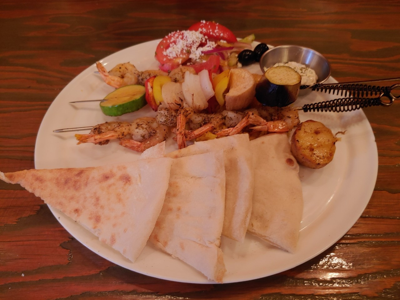 잠시 뒤, 새우 수불라키가 눈앞에 놓였다.