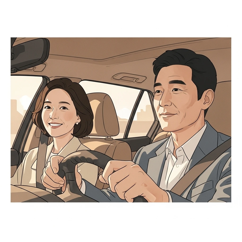 조수석에서 흘러나오는 그녀의 웃음이다.