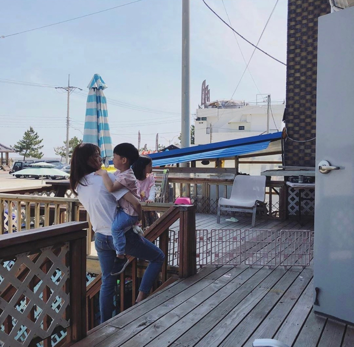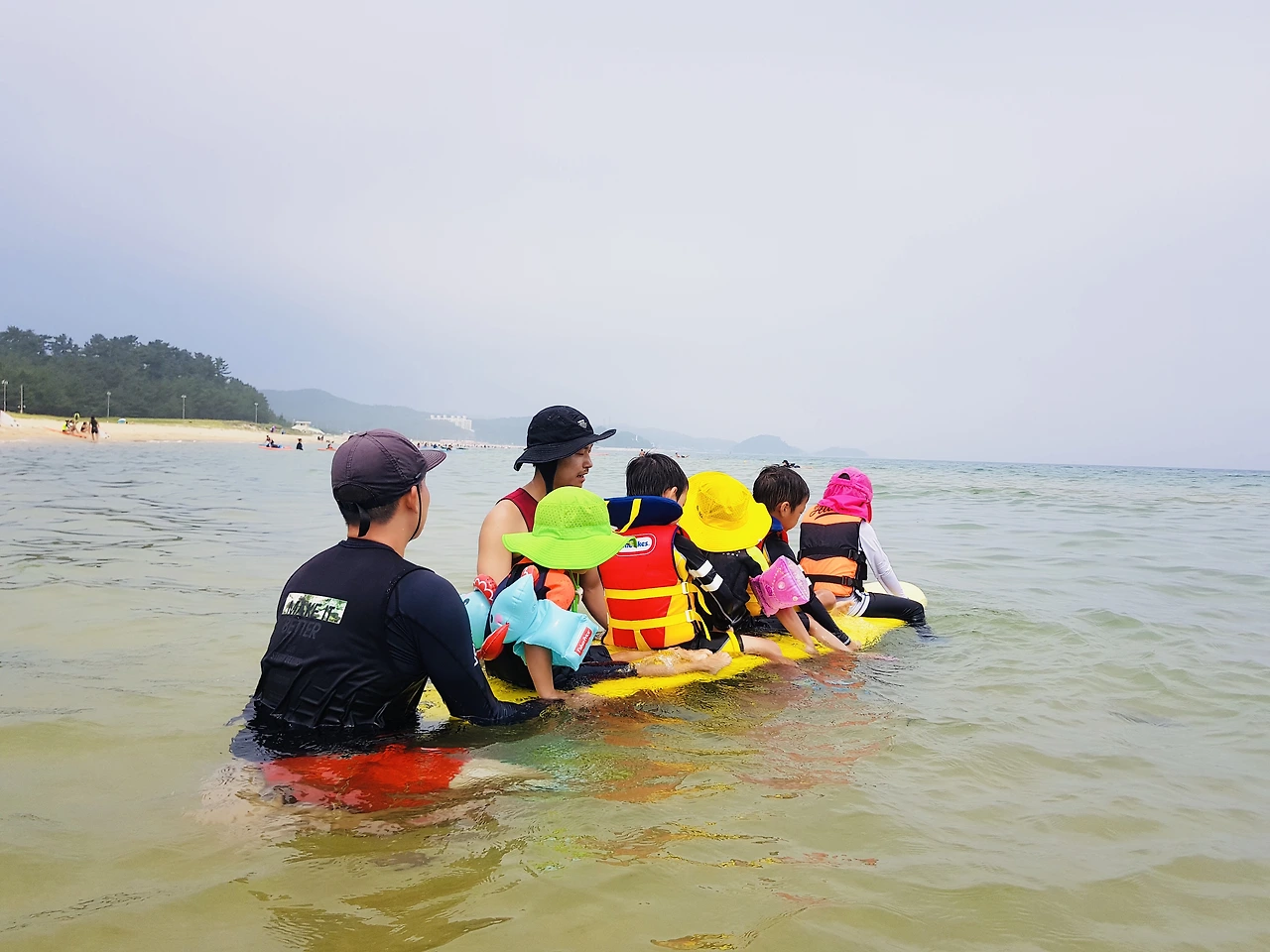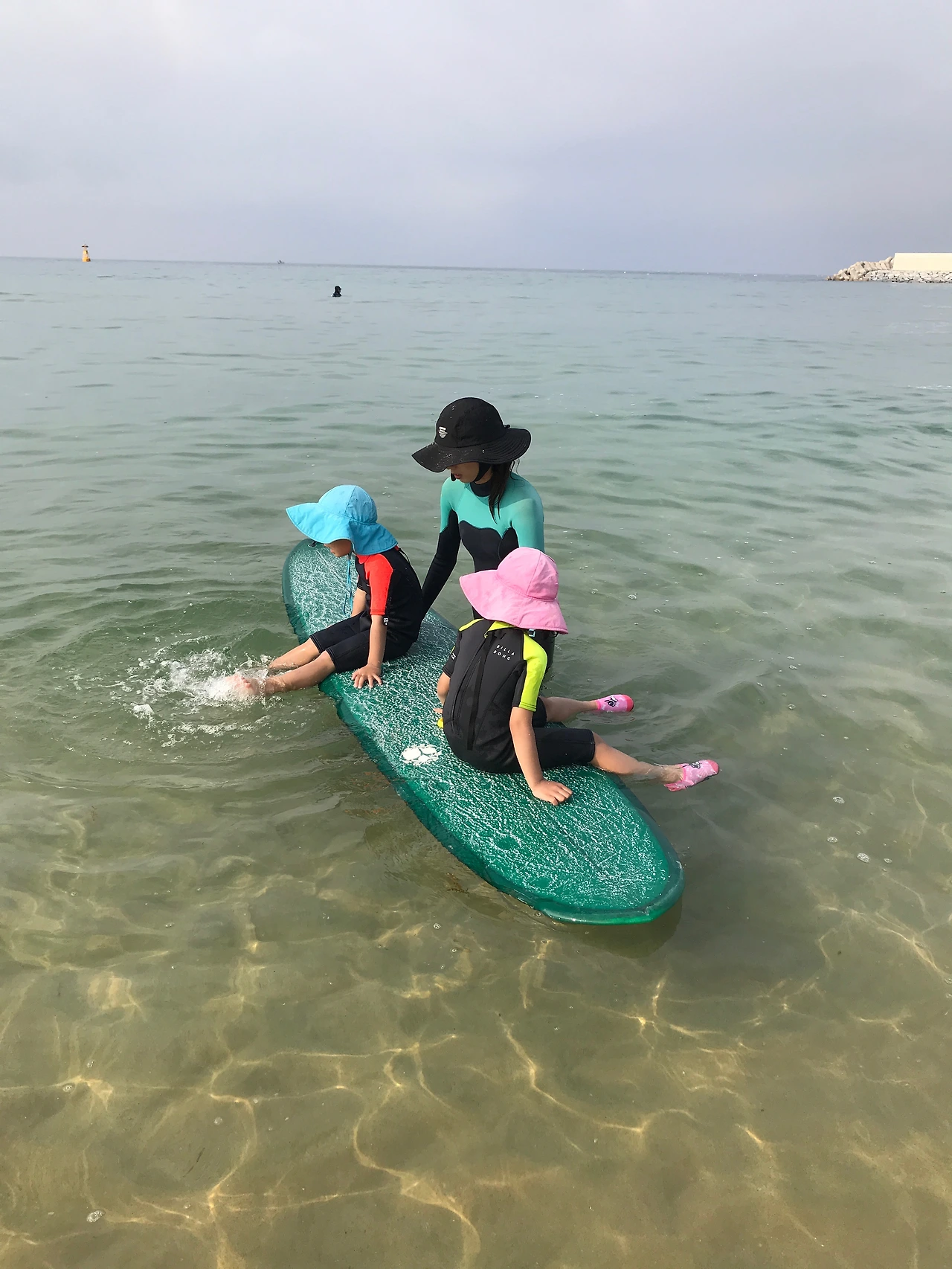 그래서 한 사람이 바다에 들어가면 다른 한 사람은 아이들과 함께 있고, 파도가 없는 날은 함께 보드에 태우고 놀기도 했다.