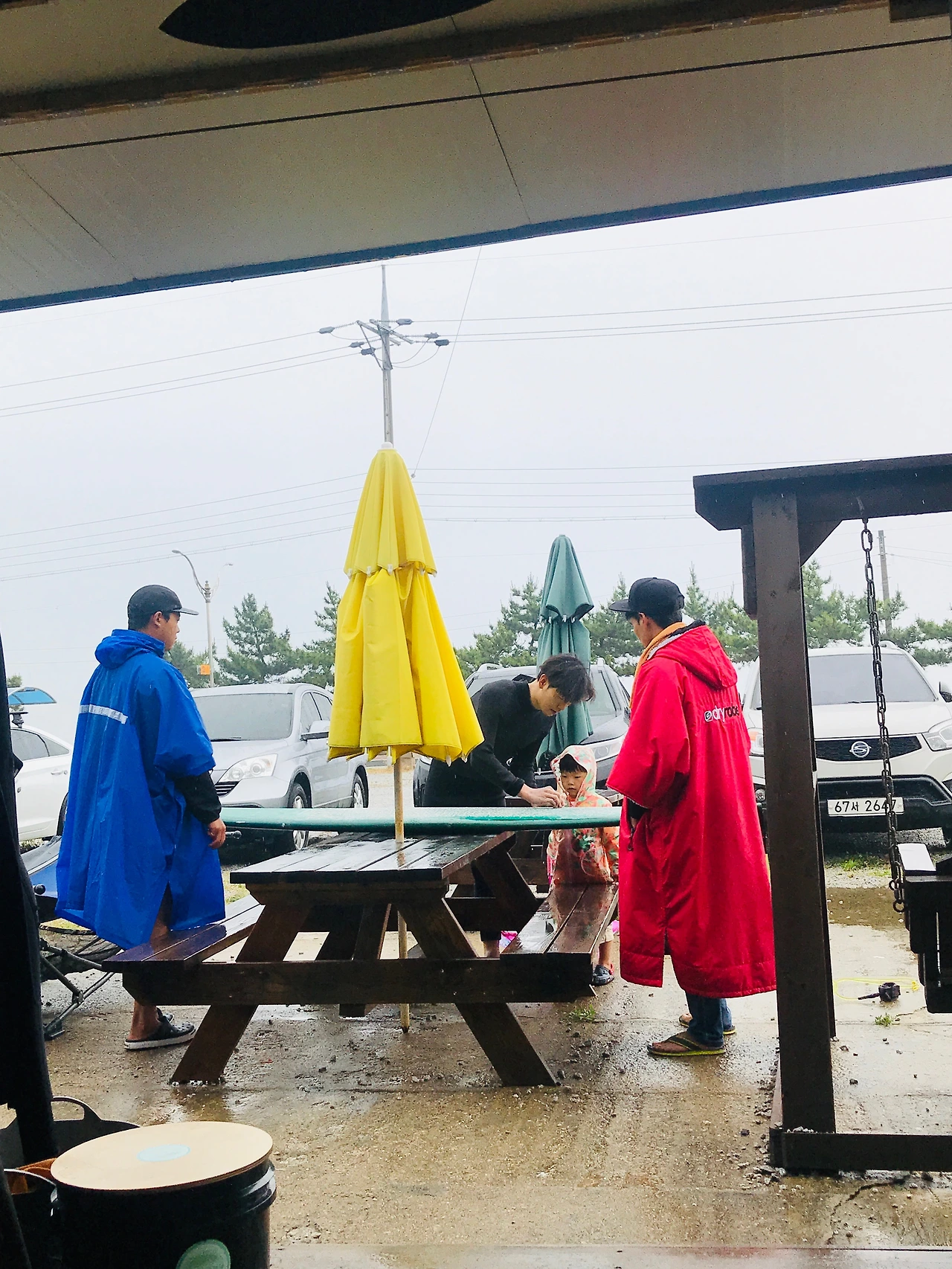 비가 와도 파도가 좋은 날은 서핑을 탄다.