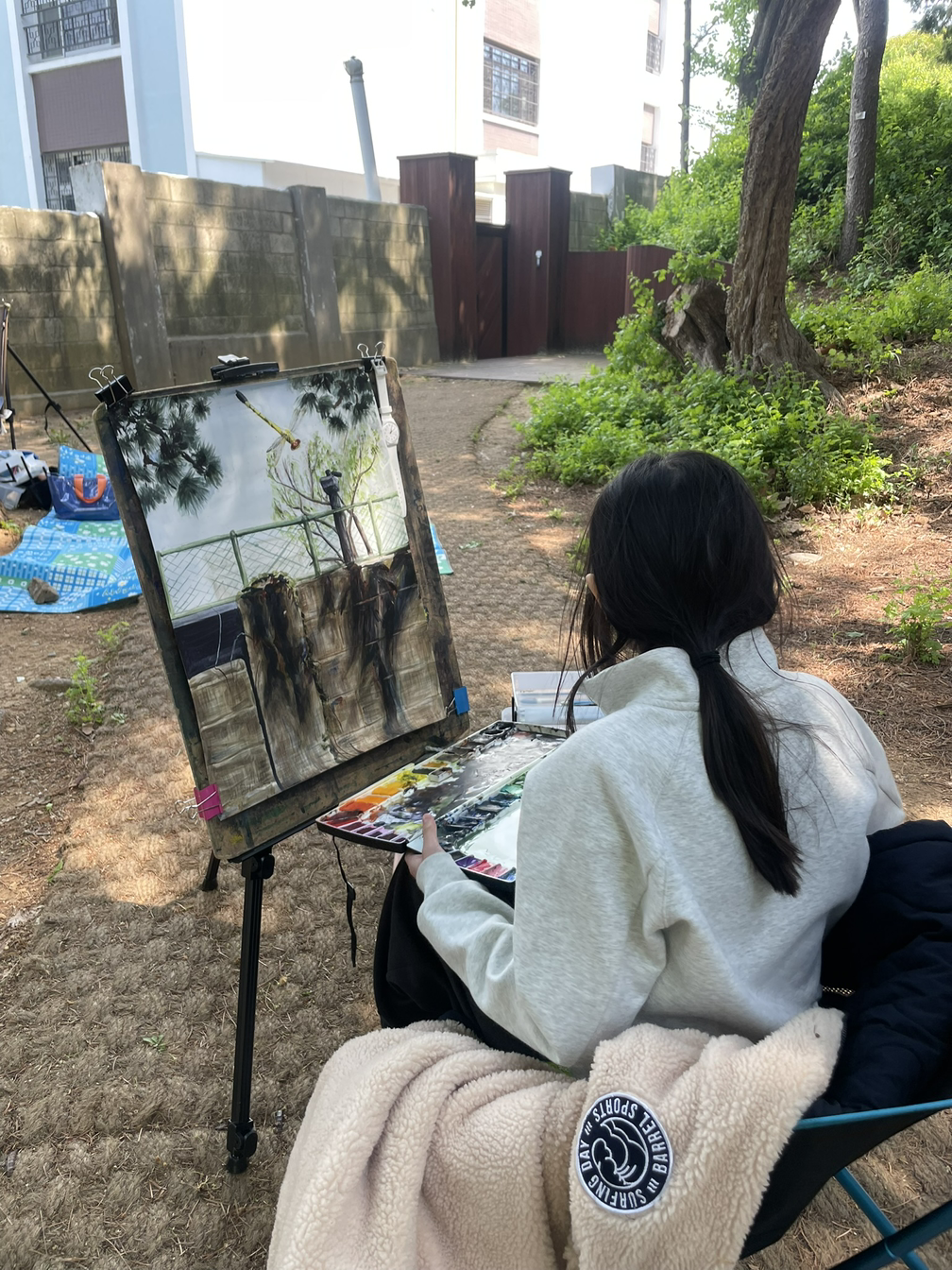 쉬운 듯 어려운 주제란 생각이 들었네요. 봄날, 꿈... 아이가 잘 표현할 수 있을지 좀 걱정은 됐었죠. 학원에서 풍경화 그리는 법 연습도 한 번씩 했었고, 그림을 그릴 스폿도 대략 관리를 해주셨어요. 정말 쌩으로 혼자 참여하면 많이 헤매었을 듯싶어요.