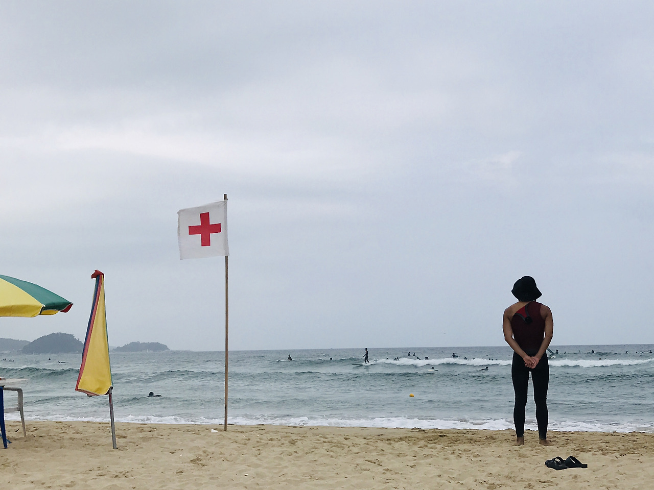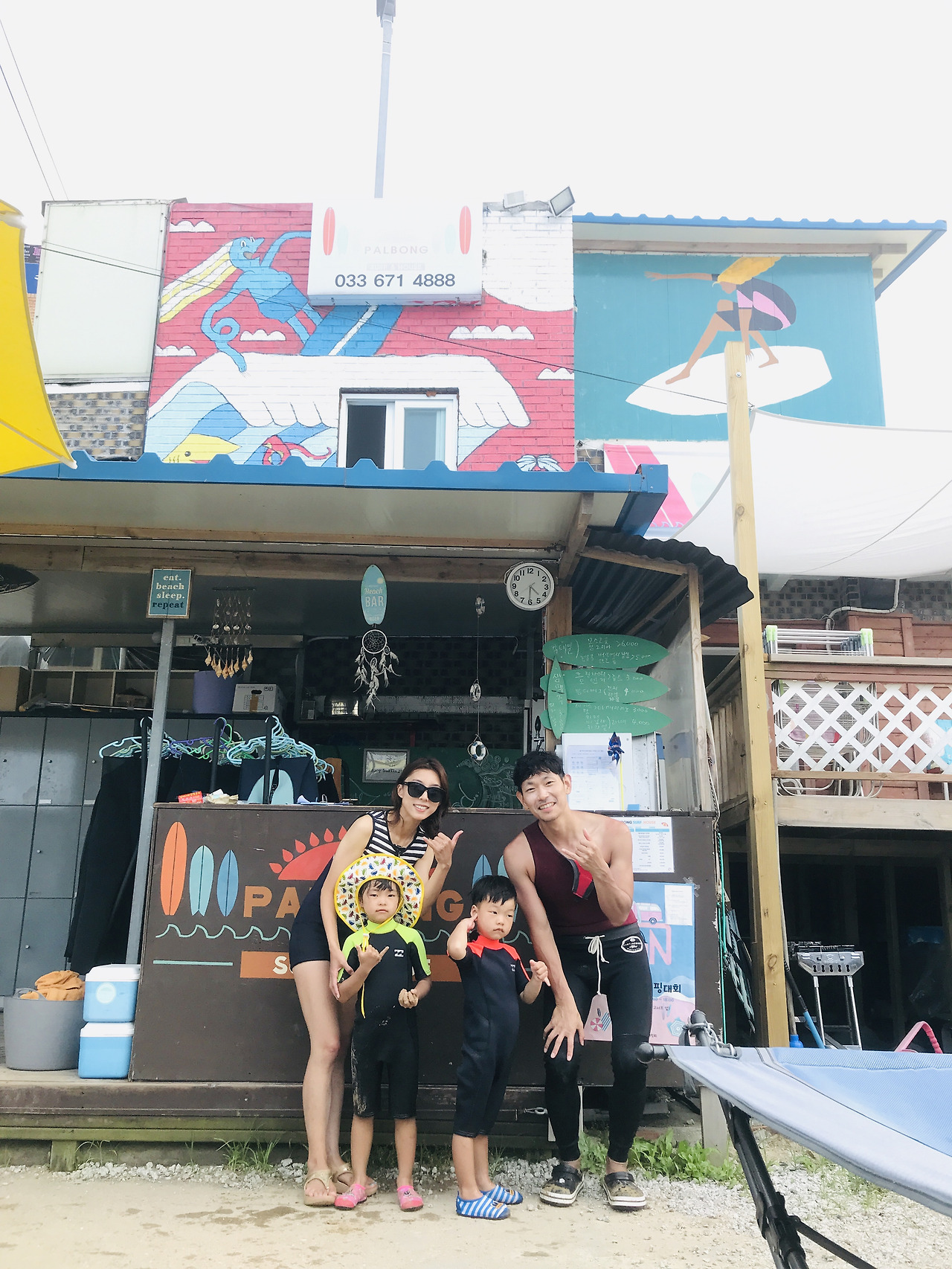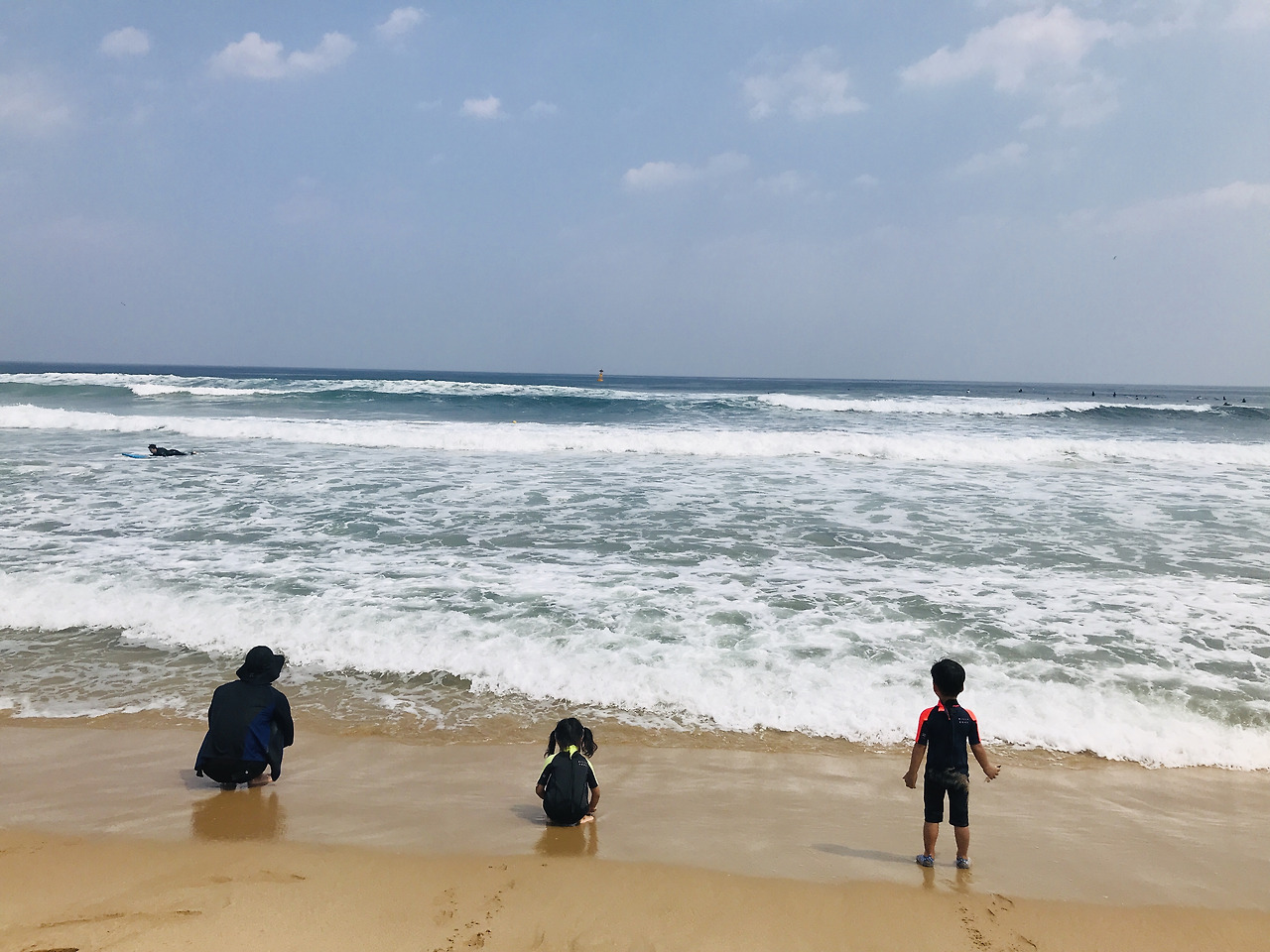유남매만 두고 부부가 둘 다 서핑을 하러 갈 수는 없어서 우리 부부는 번갈아가면서 서핑을 해야 했다. 그래서 최대한 서핑존 가까운 해수욕존에 파라솔을 잡고, 짐을 챙겨놓은 후 각자의 역할에 충실했다. 서퍼가 되었다가 유남매와 해수욕객이 되었다가.