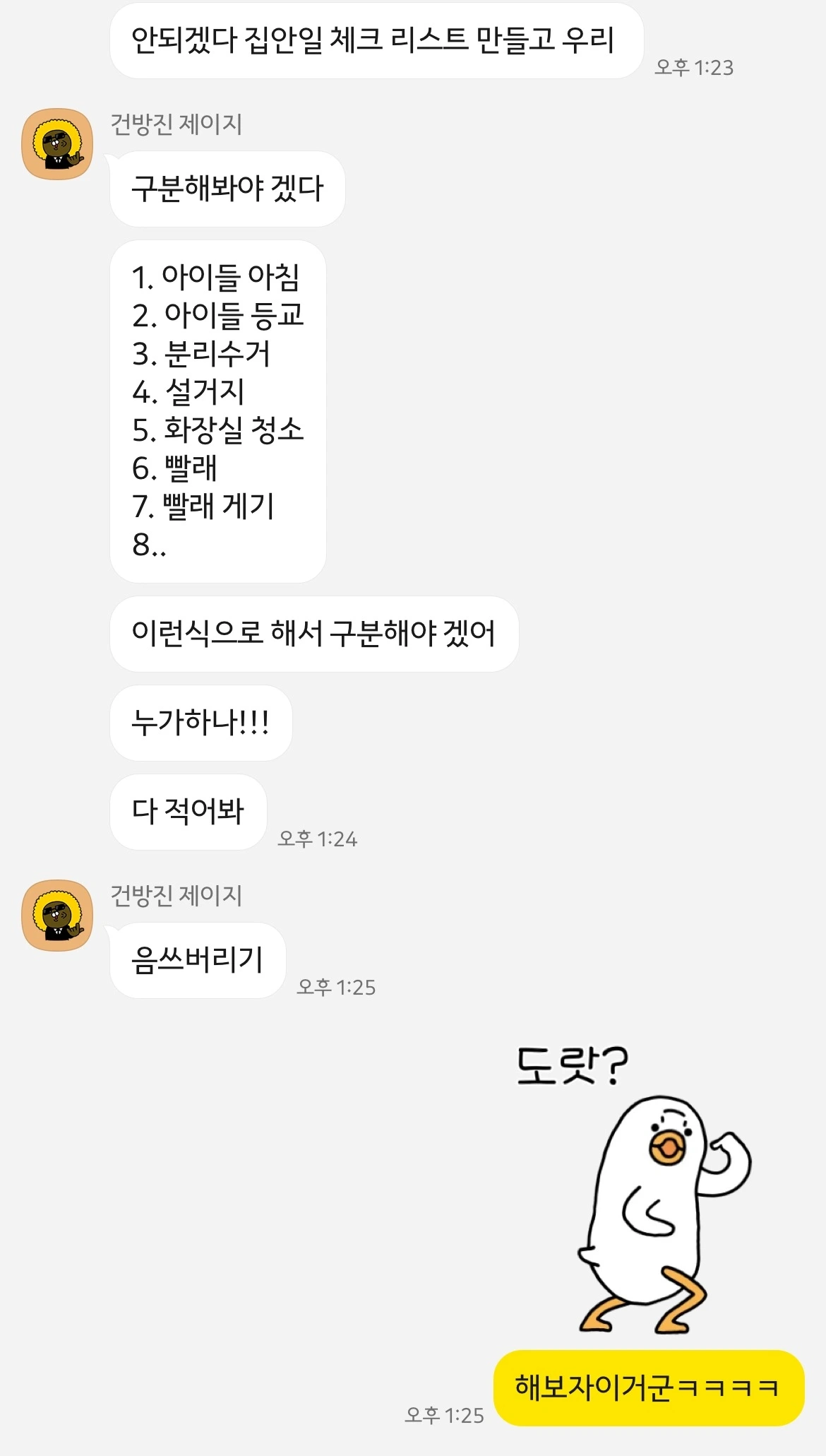 그런데 갑자기 집안일 체크리스트를 만들어보잖다.
