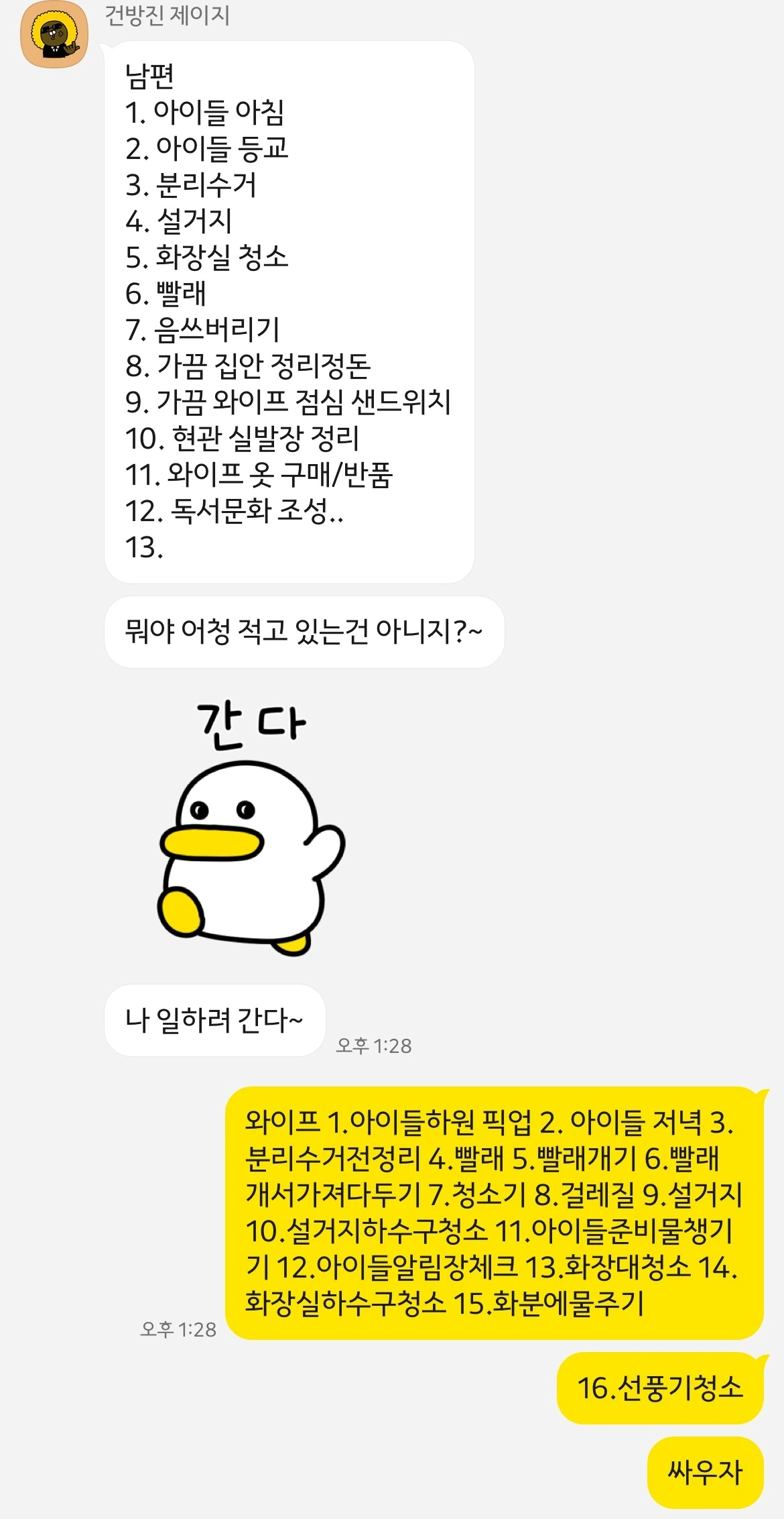 그나마 아이들 관련해서는 아침저녁 분담이 확실하기 때문에 열외라 하더라도, 나머지에 대해서는 나름대로 첨예했다.