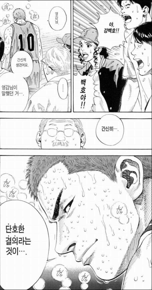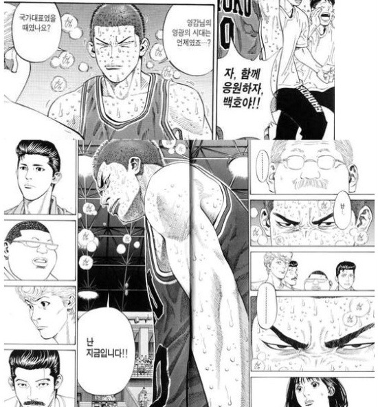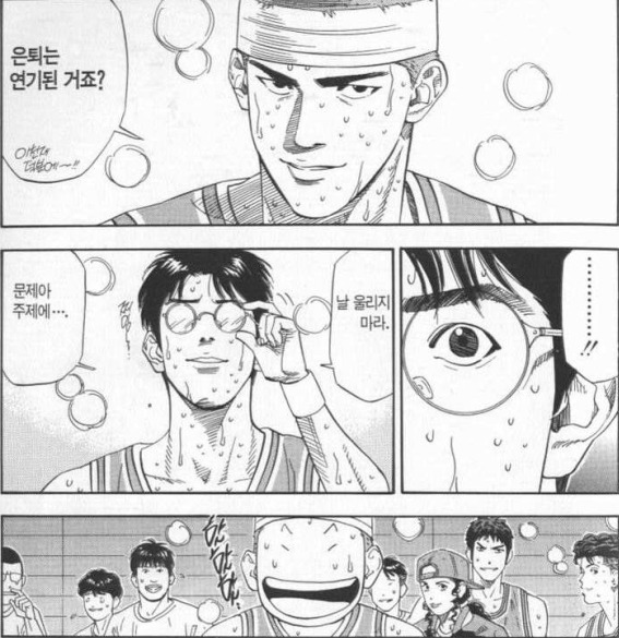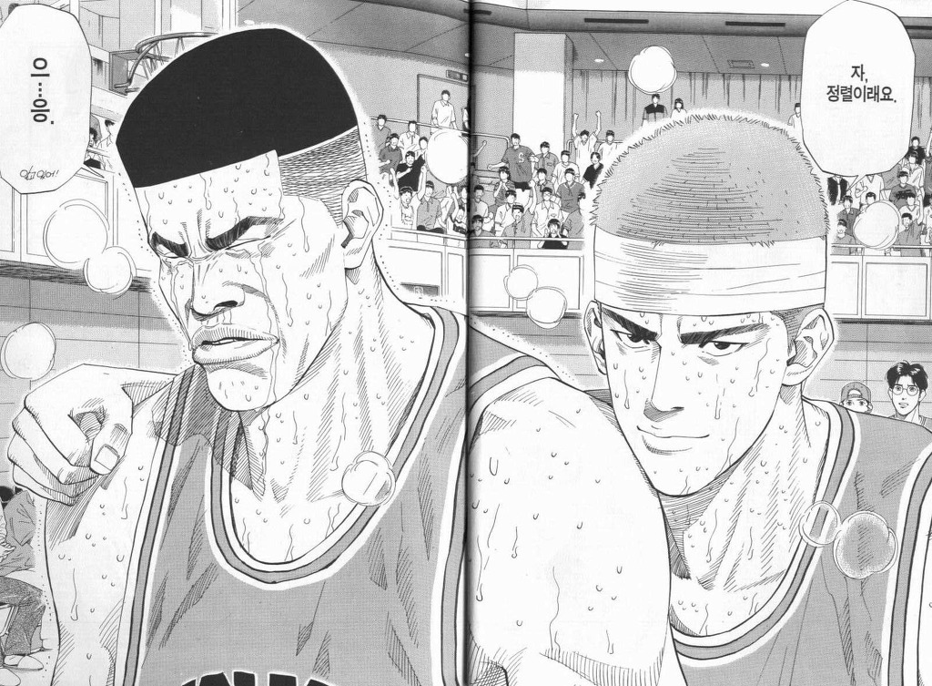 이어지는 백호의 은퇴 연장 드립과 감격에 겨워 뜨거운 눈물을 흘리는 북산의 두 정신적 지주, 채치수와 권준호의 모습은 정말 뭉클하다.