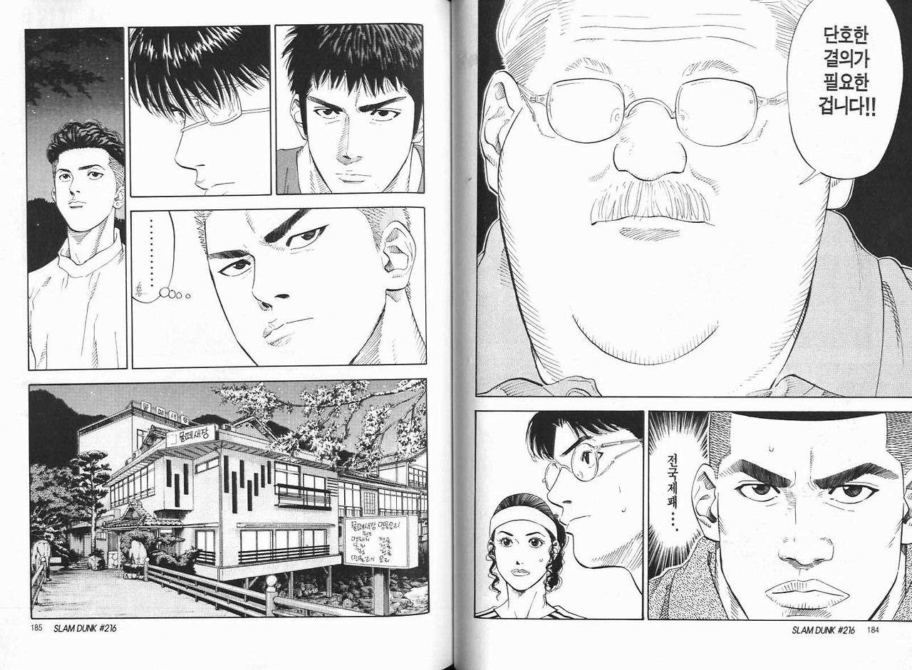 그 유명한 "영광의 시대" 대사. 소연이도, 백호 군단도, 안 선생님도 모두 백호를 걱정해 경기에 다시 들어가겠다는 백호를 말리지만, 오히려 가장 앙숙인 태웅이만이 백호의 마음을 가장 이해하고 백호가 교체로 들어올 수 있도록 파울을 해준다. 그나마 백호군단에서도 백호와 가장 친한 것으로 보이는 호열이만이 태웅이만이 백호를 움직일 수 있다는 것을 눈치채고 있는 듯한데, 나는 이 장면이 태웅이와 백호가 비록 겉으로는 늘 투닥거리고 싸우기만 하는 앙숙으로 보여도 사실은 이미 서로에 대해 가장 잘 알고 있는 친구가 되어버렸다는 사실을 상징하는 명장면이라 생각한다. 마지막 패스에 대한 복선으로 보이기도 하고.
