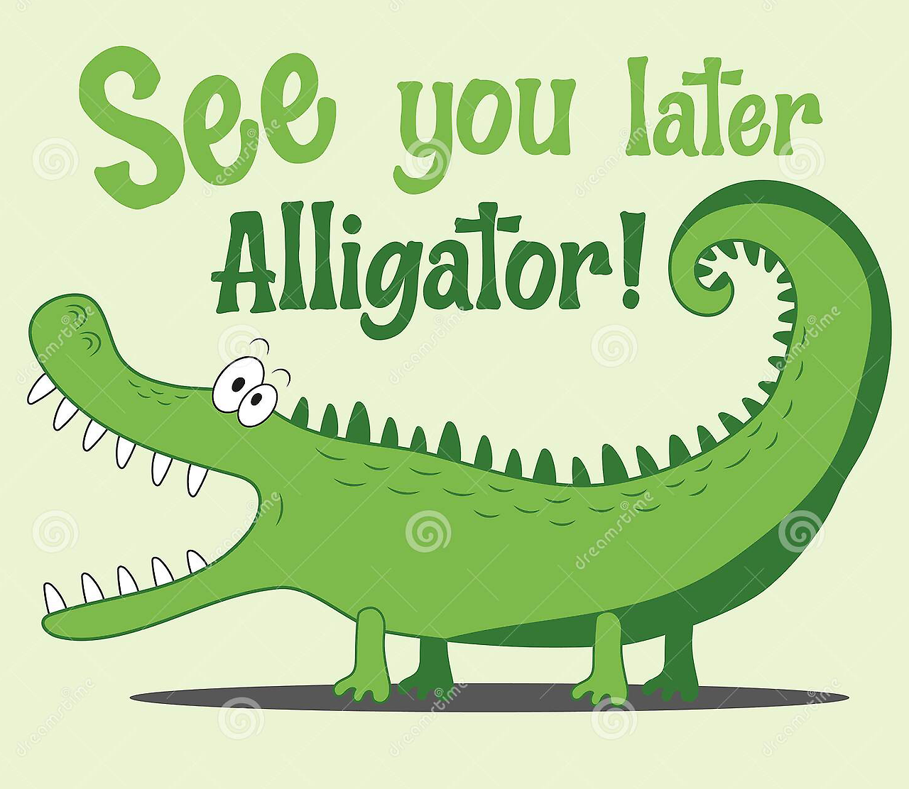 마지막으로 오랜만에 만난 친구와 반갑게 인사할 때는 주로 “It’s been a long time”, 혹은 “It”s been a while” + “How have you been?”의 조합이 많이 사용되는데, 장난으로 이 글의 커버 사진처럼 “It’s been a while, crocodile!”이라고 하는 경우가 있다. 미국인들은 라임을 통한 언어유희를 좋아하는데 자매품으로 작별 인사로 사용하는 “See you later, alligator!”가 있다.