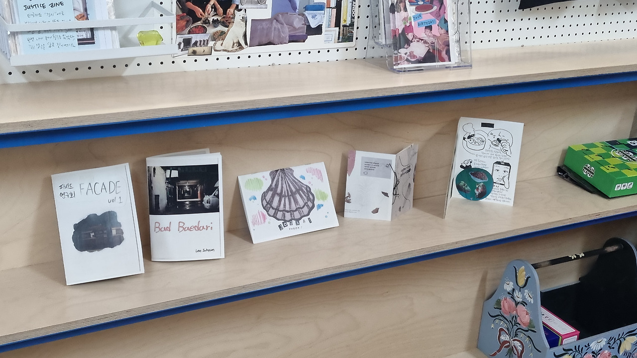 패치워크라는 이름이 새겨진 건물은 1,2층이 동양가배관이라는 카페고 3층에 프린트아웃이라는 Zine 메이킹을 하는 공간이 있었다. 안에서는 운영진들이 수집하거나 여기서 만들어진 zine들을 열람해 볼 수 있었고, Zine을 만들기 위한 각종 도구가 있었다. 영진님이 차분하게 Zine에 대한 기본적인 개념들을 소개했고, 각자 돌아가며 자기소개를 한 다음 어떤 관심사가 있는지 이야기했다. 참가자는 나 포함 네 명이었고 각각의 관심사는 이랬다.