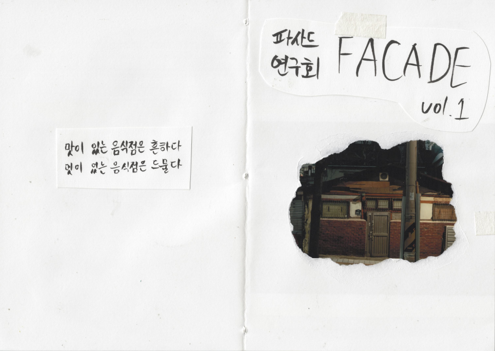 다들 귀엽다고 생각하며, 사실 나 빼고 다 여성분들이라 더 그랬지만, 이상한 주제들만 떠올라서 괴로워하다 '파사드 연구회'를 만들어보겠다고 했다. 나는 낯을 가려서 혼밥을 해야 할 때 식당 앞에서 가게 전면부를 열심히 관찰하곤 했다. 그래서 가게 전면부인 파사드만 보고도 가게의 여러 요소를 추리하는 기술을 갖게 된 이야기였다. 조심스럽게 꺼낸 이야기에 모두 꺄르륵하면서 재밌을 것 같다며 좋아해 주셨다. 내가 좋아하는 것들이 편안하게 받아들여지는 분위기, 사실 그게 가장 중요했다. 나 포함 거기 모인 사람들은 좋아하는 것을 마음 편히 꺼낼 수 있다면 뭐든 꺼낼 준비가 되어 있는 사람들이었다.