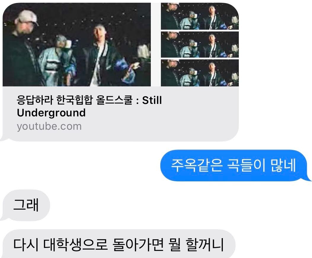 아침에 유튜브 영상이 링크된 문자가 하나 왔다. 링크된 영상에는 대학교 시절 자주 듣던 노래들이 있었다. (지금도 종종 듣고 있기는 하지만) 그 후에 이어진 친구의 뜬금없는 질문.
