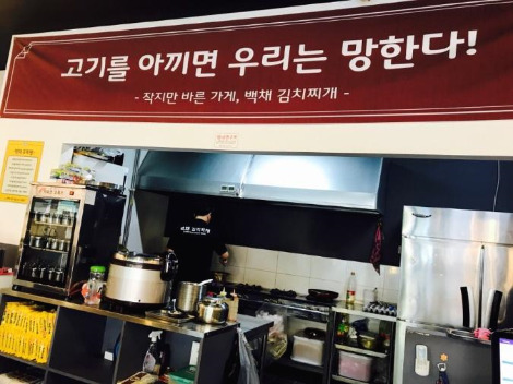 이 식당에는 ‘고기를 아끼면 우리는 죽는다. 오직 김치찌개 하나만을 정성으로 만든다.’라는 컨셉이 있었다.