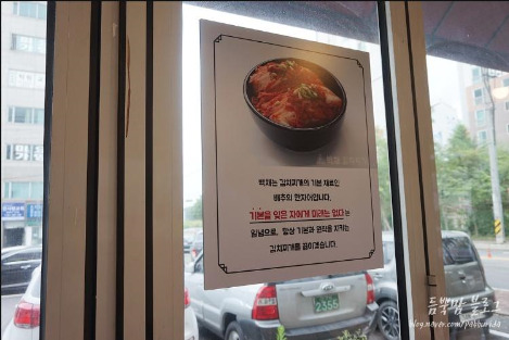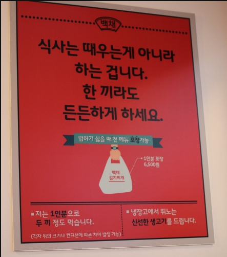 식당 문을 열고 들어가 자리를 잡았다. 자리에 앉자마자 문구 하나가 내 눈길을 잡았다.
