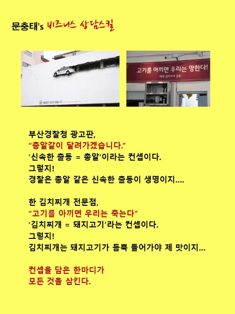 컨셉을 담은 한마디가 오늘 상담의 운명을 결정짓는다.