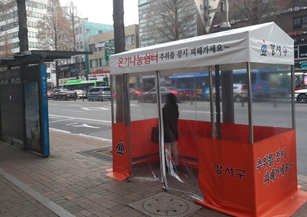 버스 정류장에 설치된 ‘온기 나눔 쉼터’이다.