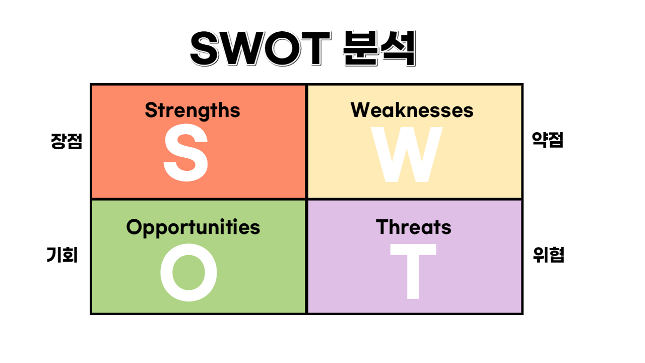 장점과 약점, 기회와 위협 요소들을 파악해서 어떤 요소들을 이용해서 어떤 방향으로 나갈 것인가 하는
