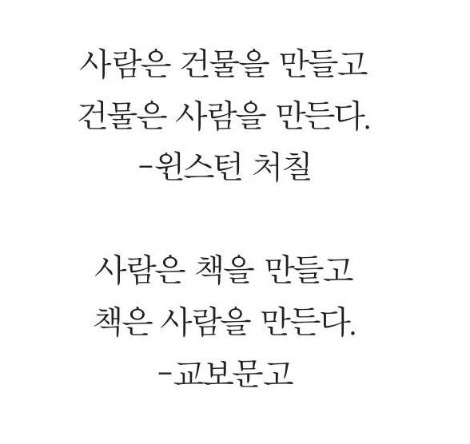 윈스턴 처칠의 말에서 '건물'을 '책'으로 바꾸었더니 오늘의 교보문고의 유명한 문구가 만들어졌다는 것이다.