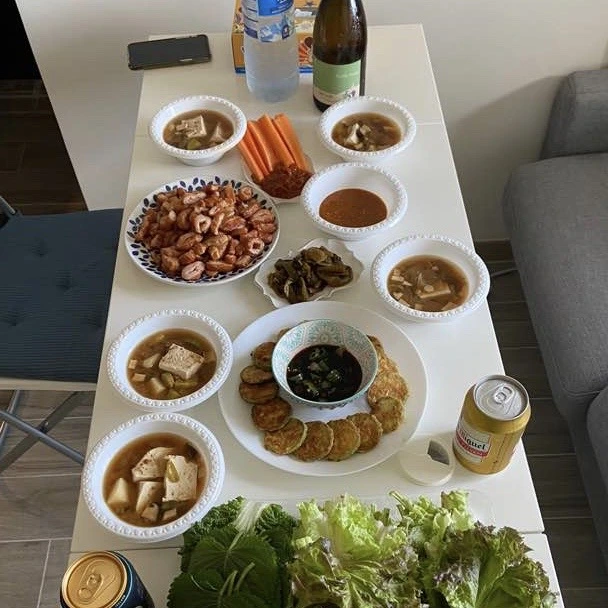 코로나와 함께 급속도로 발전한 홍콩의 배달문화 덕분에 요리도 하고 배달음식도 시켜먹으며 14일을 그럭저럭 보냈다. 약 덕분인지 폐쇄공포증은 다시 몰려오지 않았다. 재택근무는 계속되고 있었고 오후 6시 이후에 모든 식당은 테이크아웃밖에 허용되지 않았기 때문에 사회적인 답답함은 지속될 것이 불 보듯 뻔했다. 다시 이 답답한 마음을 들이지 않으려면 내 노력이 필요하다는 생각이 들었다. 가기 전 몇 번 만나서 안면을 텄던 친구들을 격리가 끝난 주의 토요일에 집으로 불렀다. 한국에서 사 온 막창으로 Welcome back 파티를 열기로 했다. 내향형인 인간인 나는 모임을 주최하거나 주도하는 일을 인생에서 거의 해 본 적이 없어서 상당한 마음의 각오가 필요했다. 다들 부담스러워하면 어떡하지? 재미없어하면 어떡하지? 하는 여러 고민으로 마음은 시끄러웠으나 더 이상 집에서 아무도 못 만나고 갇혀서 살 수는 없다는 경험을 통한 고통이 그 고민을 이겼다. 내추럴 와인을 잔뜩 시키고 한국에서 사 온 막창을 에어프라이어에 굽고 된장찌개를 끓이고 종갓집 장녀의 유일한 기술을 활용해 전을 몇 가지 부쳤다.